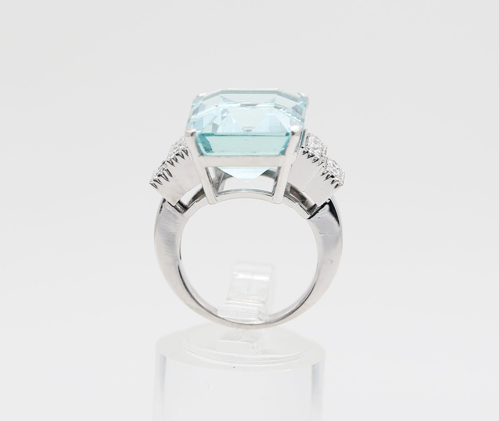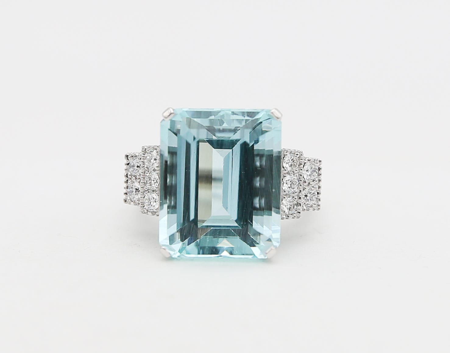 Anello con acquamarina taglio smeraldo e diamanti laterali