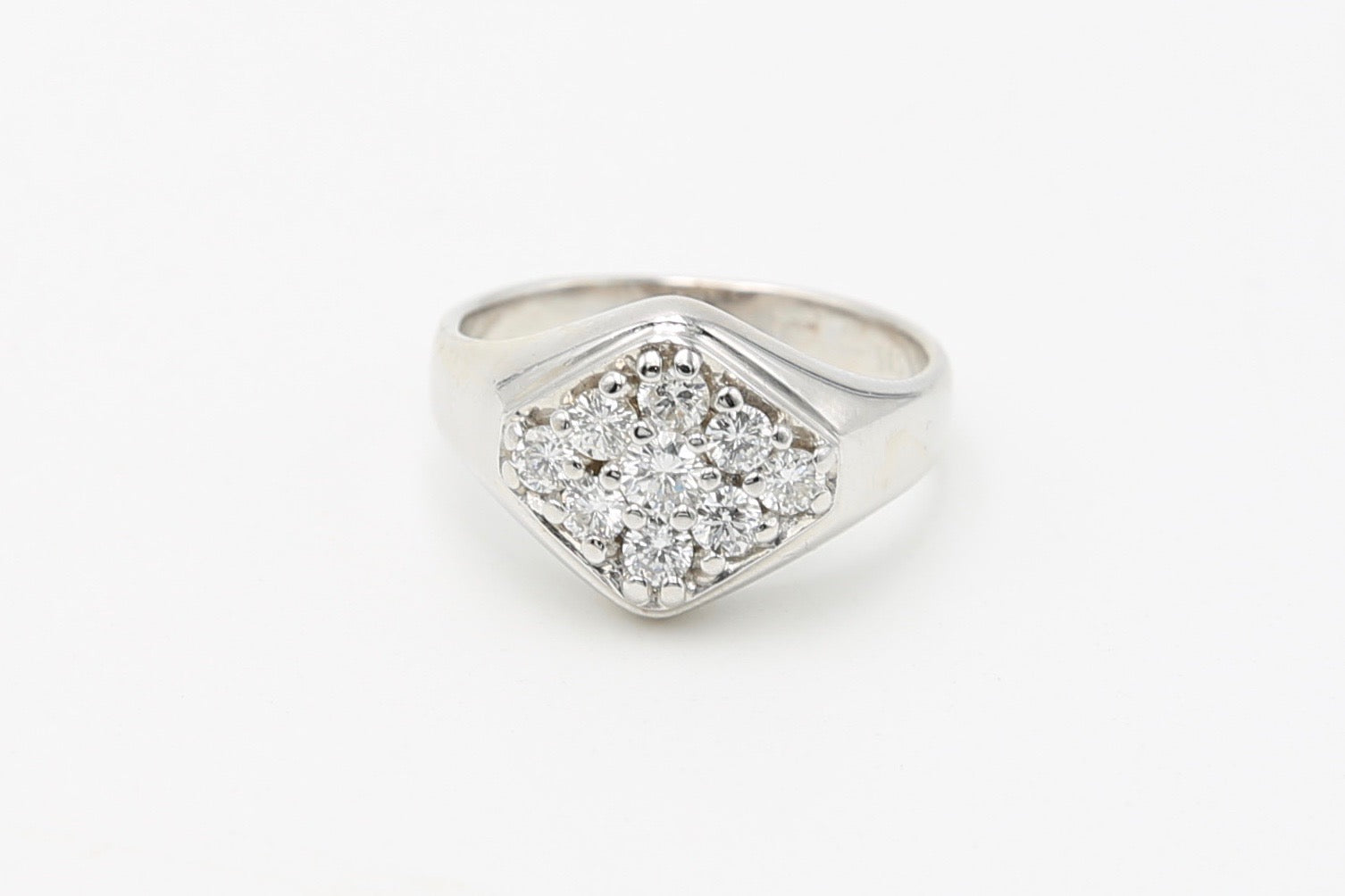 - 9 Diamanti, peso totale 0,7 carati, taglio Brillante, colore G/H, purezza VS1 (9 x 0,0778 carati)