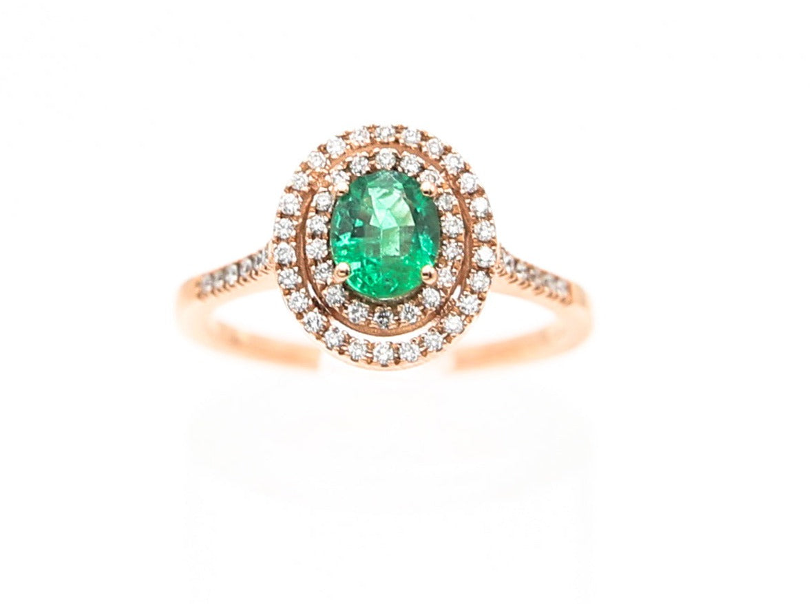 Anello oro rosa smeraldo e diamanti