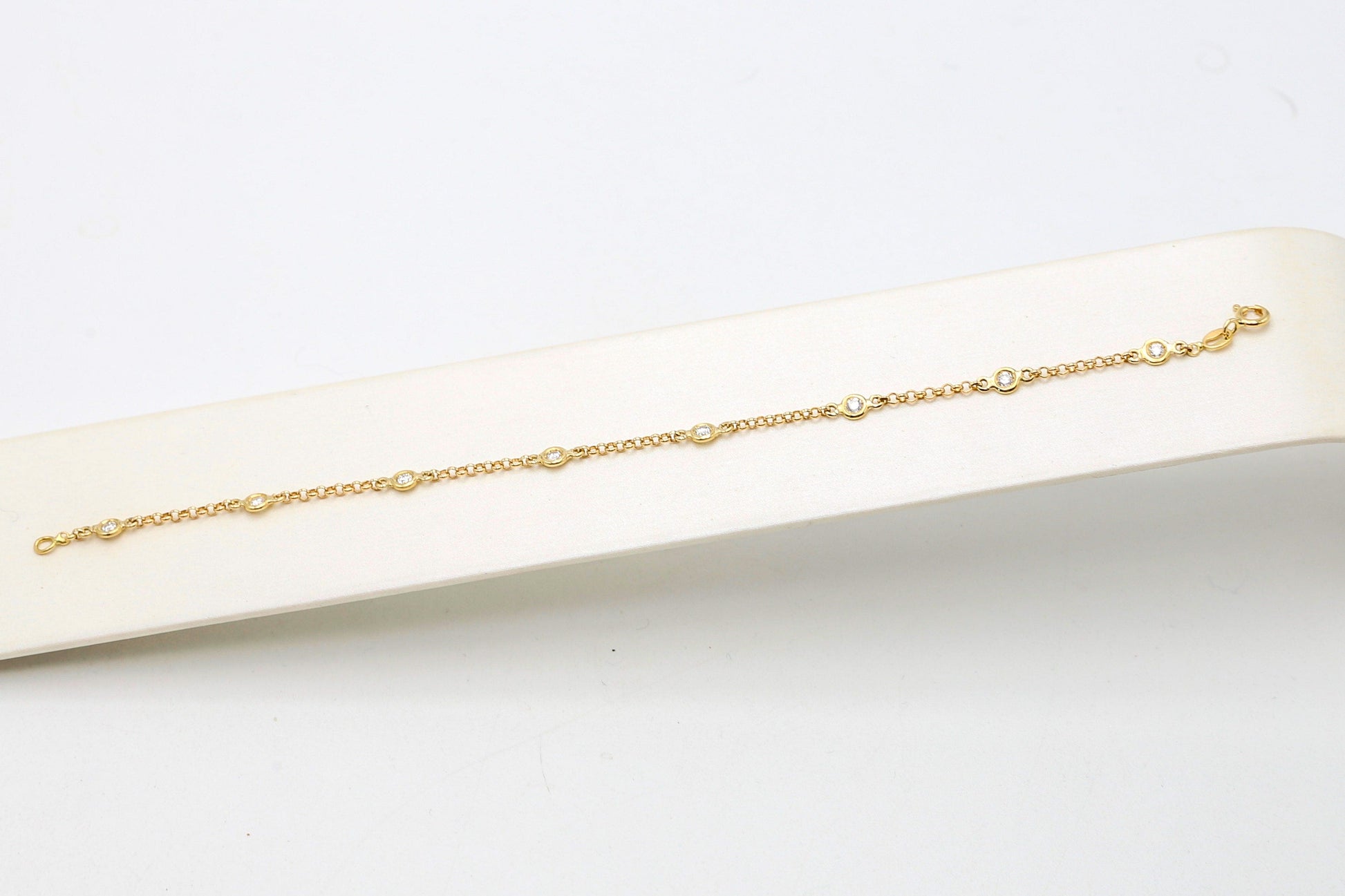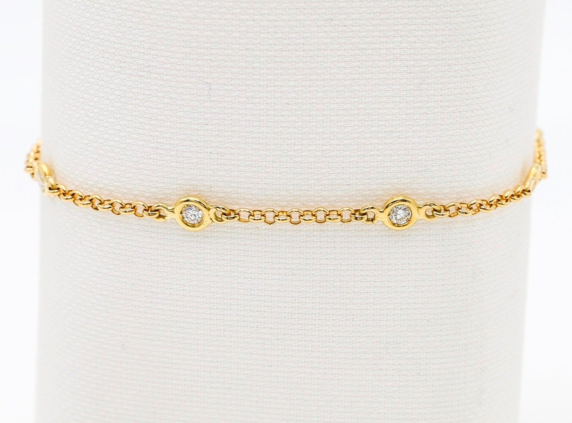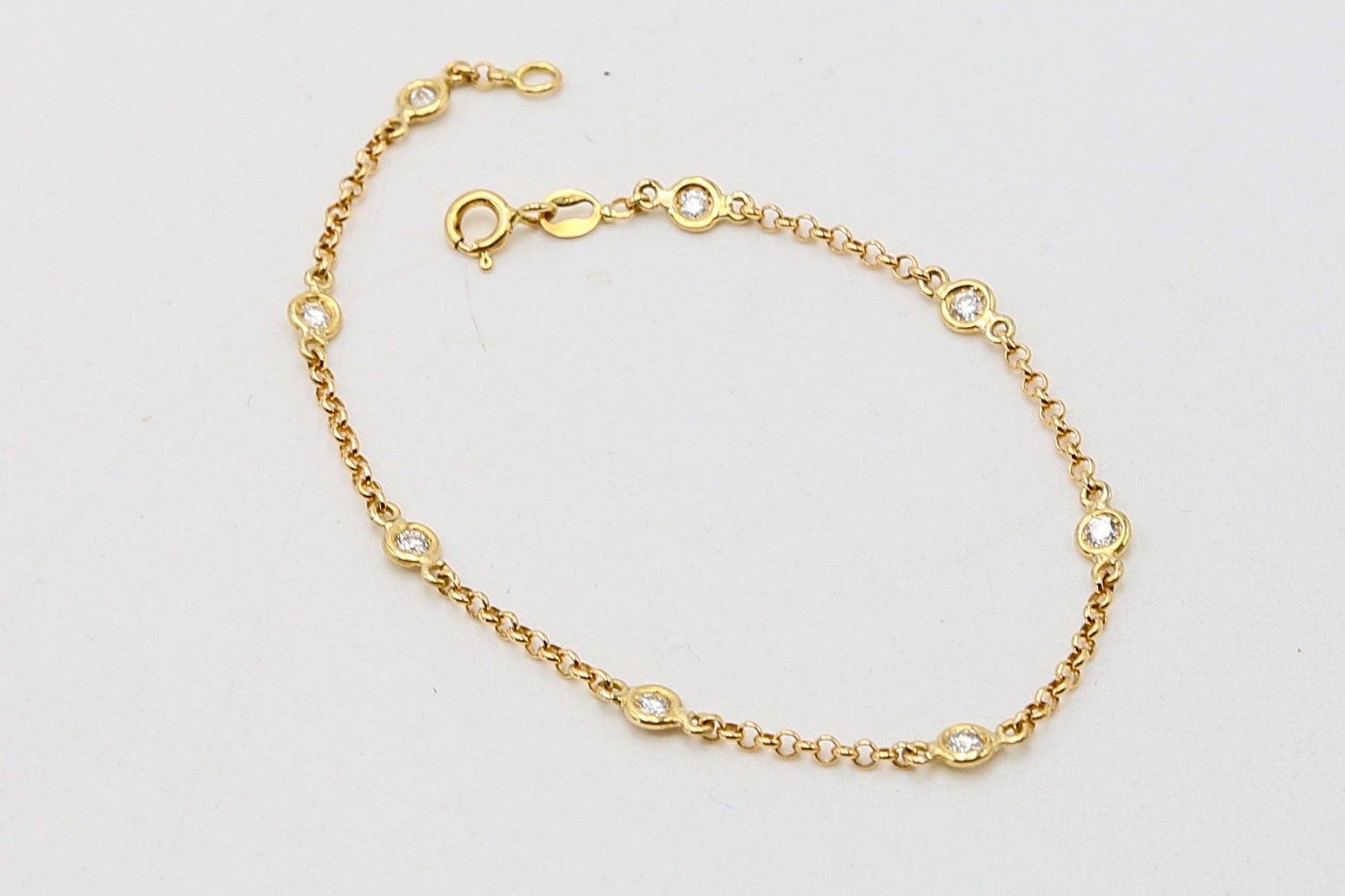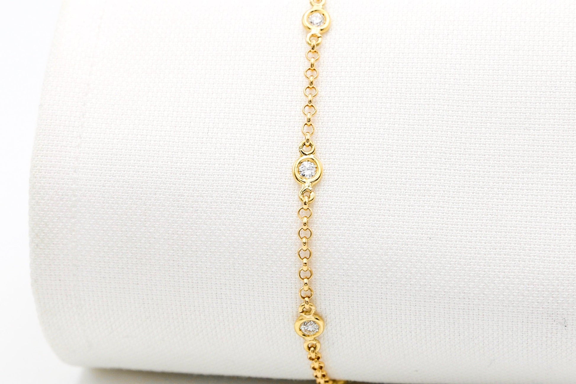 Delizioso bracciale modello "tiffany" in oro giallo 18 carati con diamanti naturali taglio brillante incastonati.