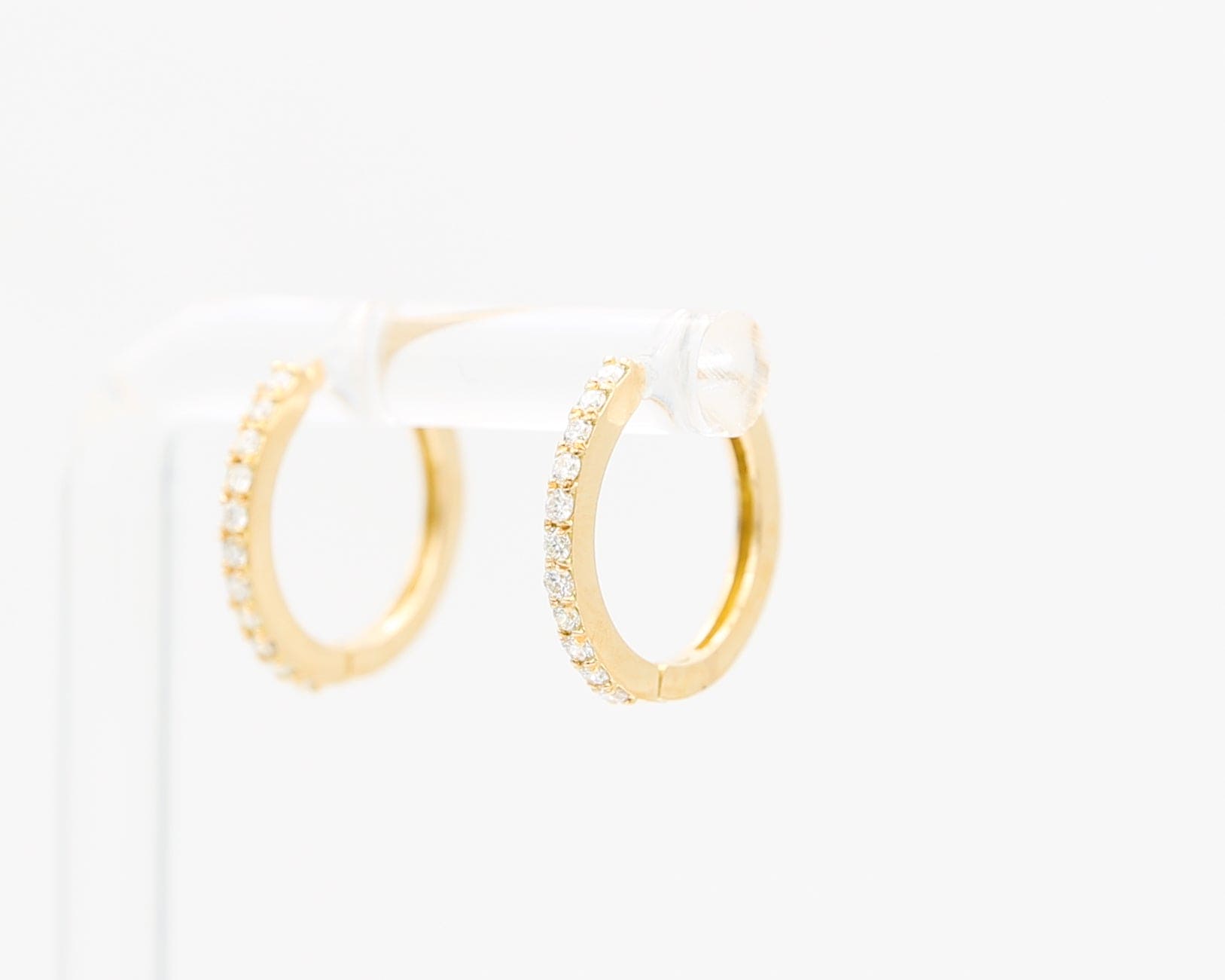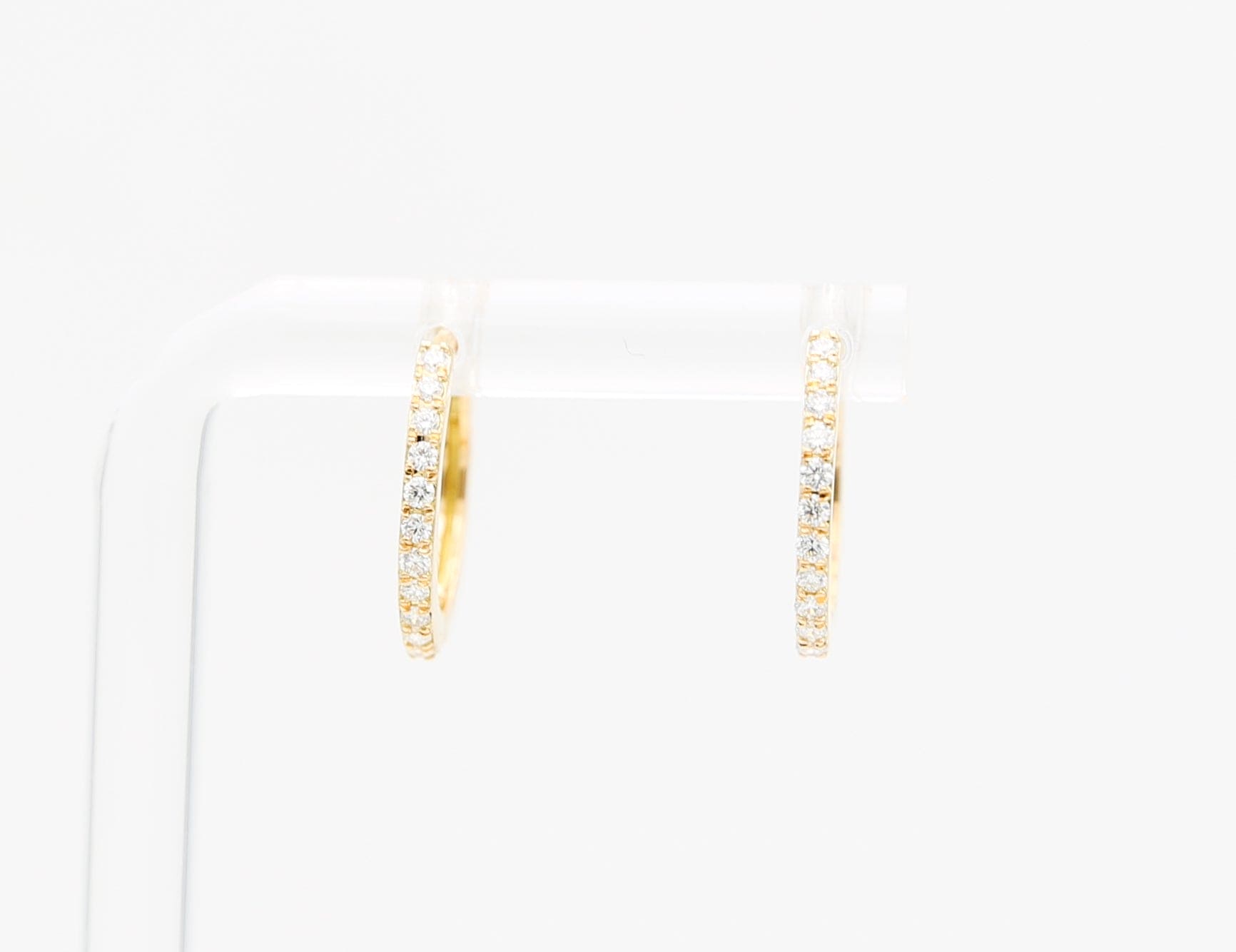 Orecchini in oro giallo 18 kt arricchiti da ventidue diamanti, pensati per illuminare con eleganza ogni occasione.