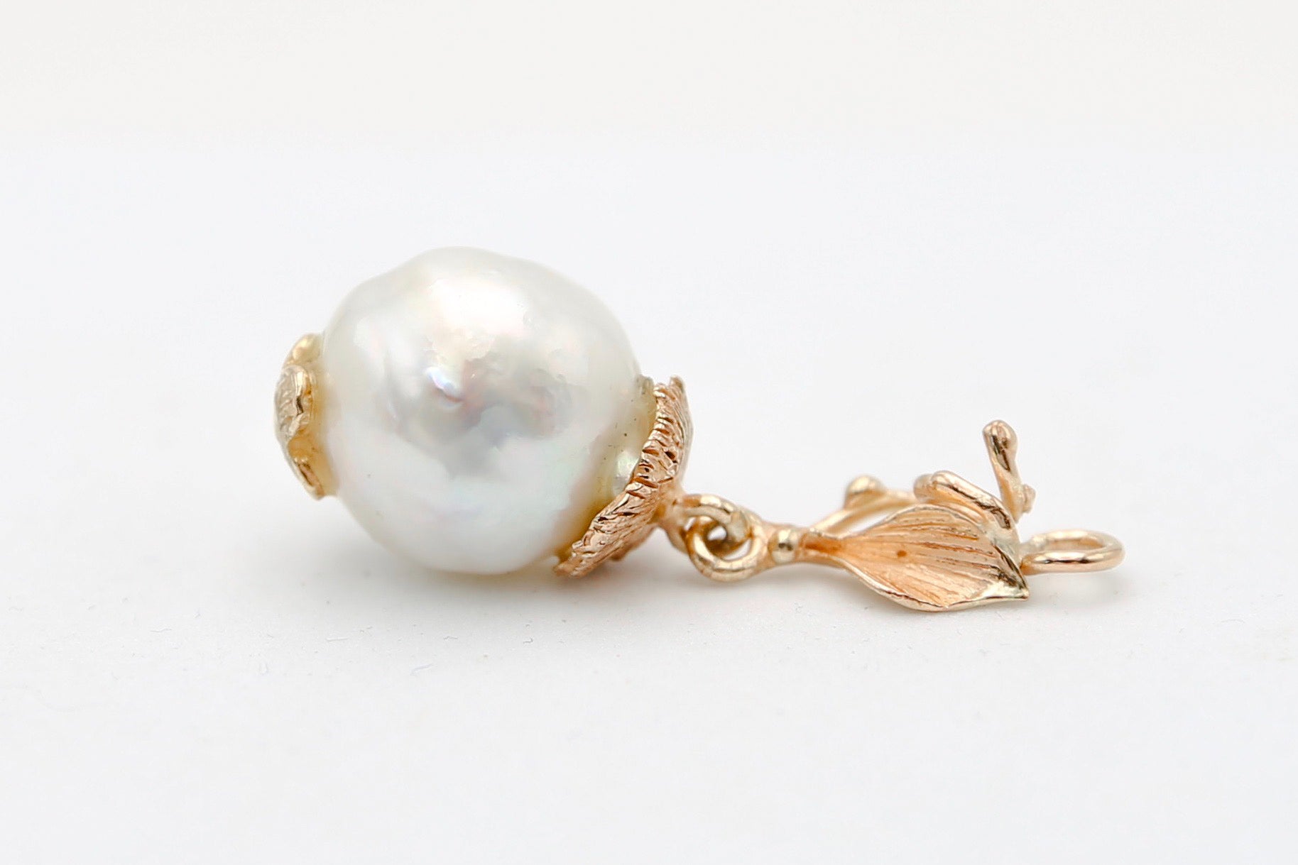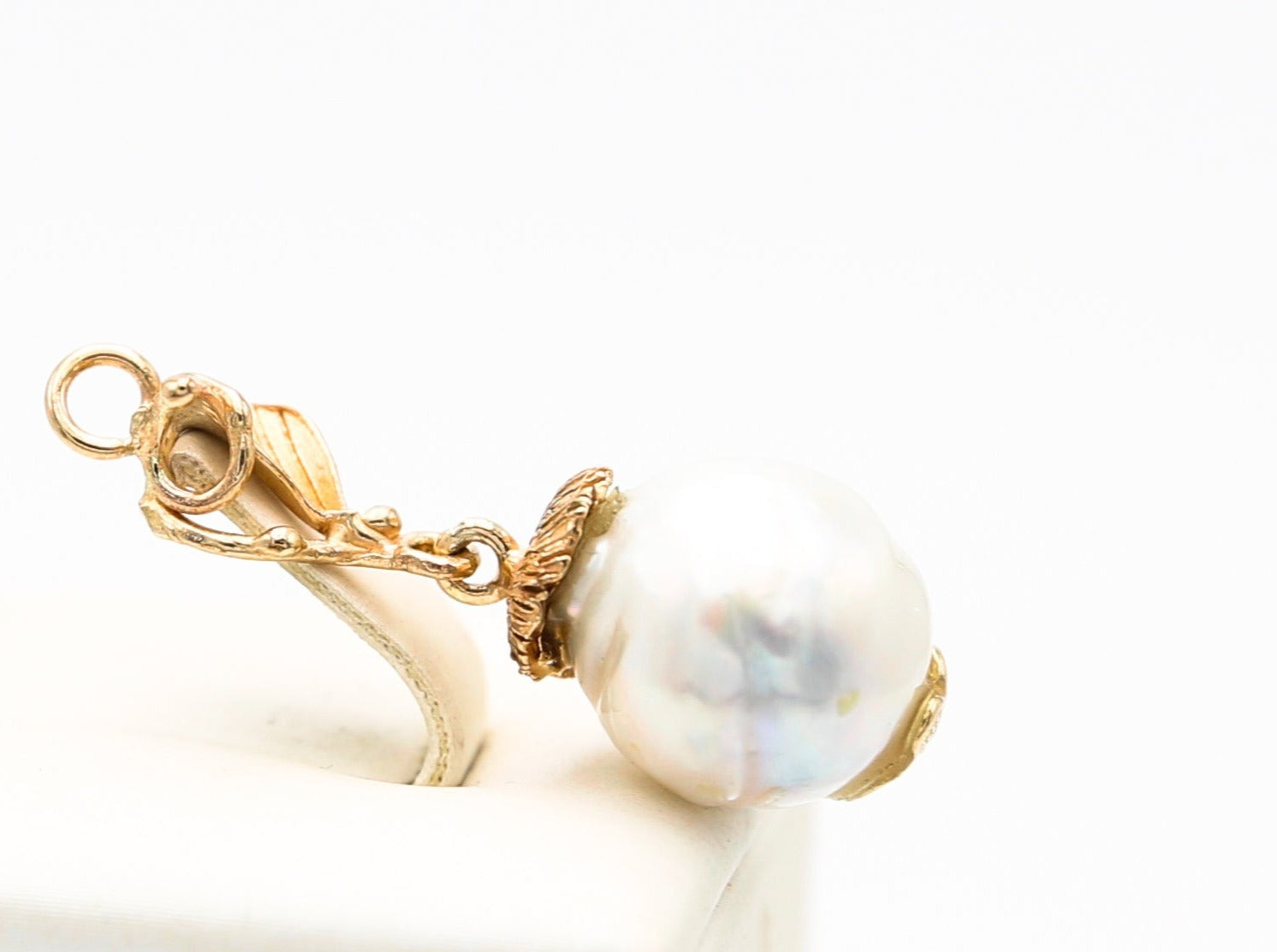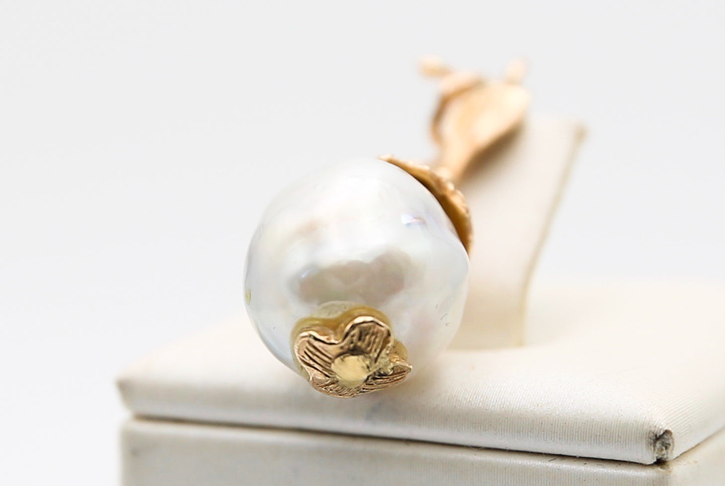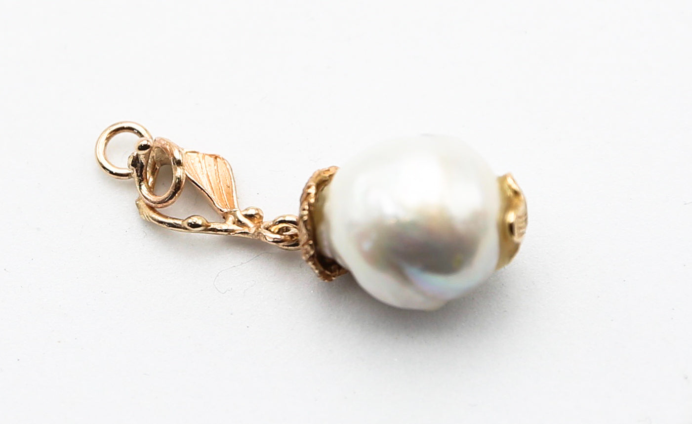 Ciondolo in oro giallo a 14kt realizzato con tecnica di cera persa con una perla barocca australiana.