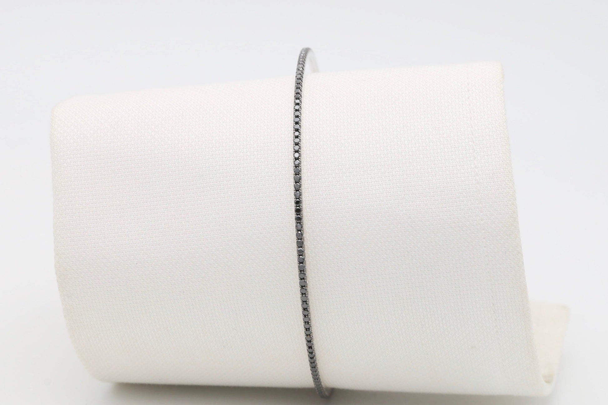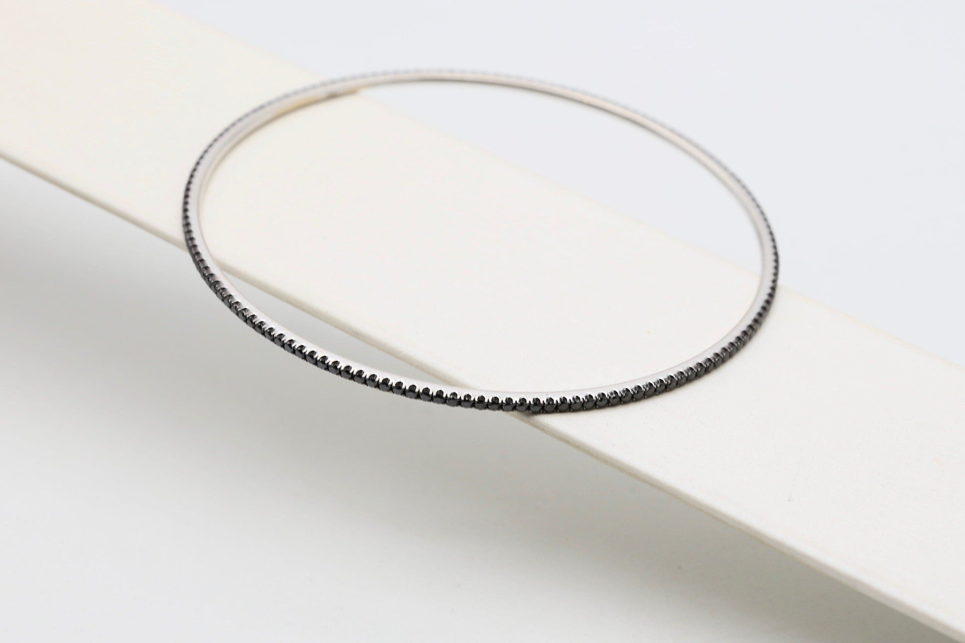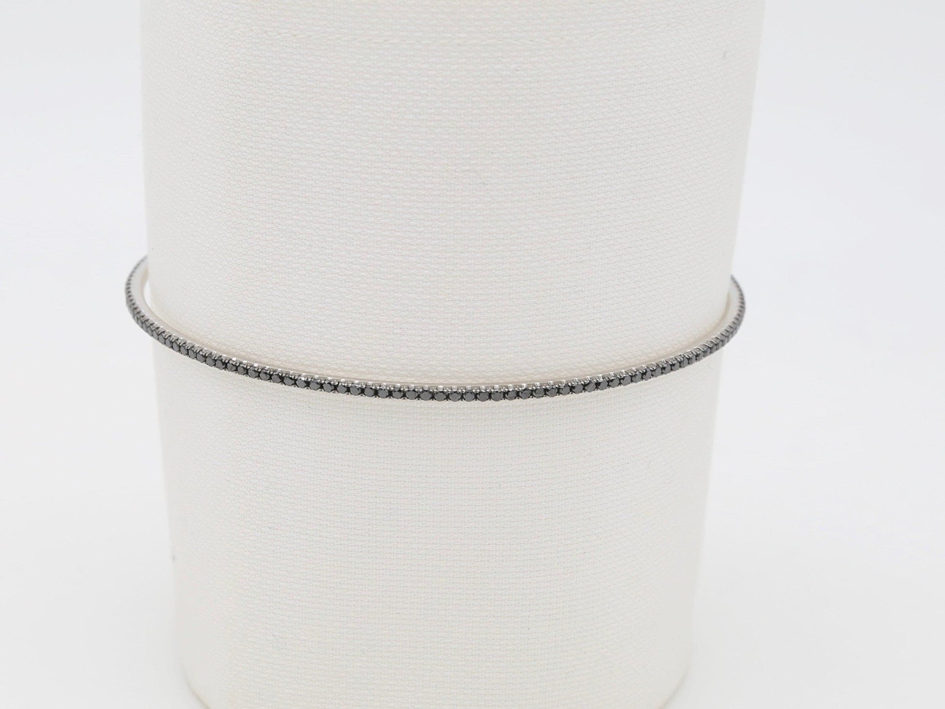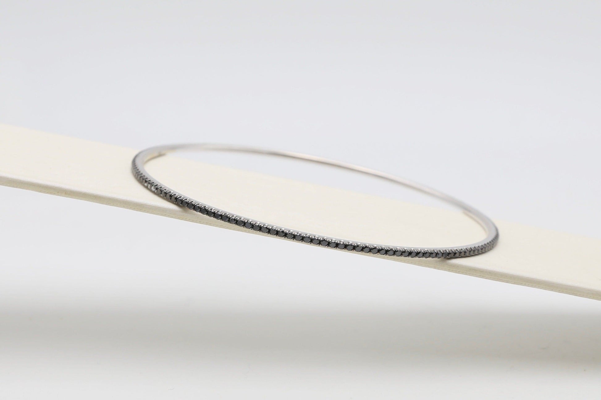 Bracciale rigido modello "cerchio" con brillanti neri incastonati su punte brunite da esperti artigiani orafi che hanno selezionato le pietre singolarmente.