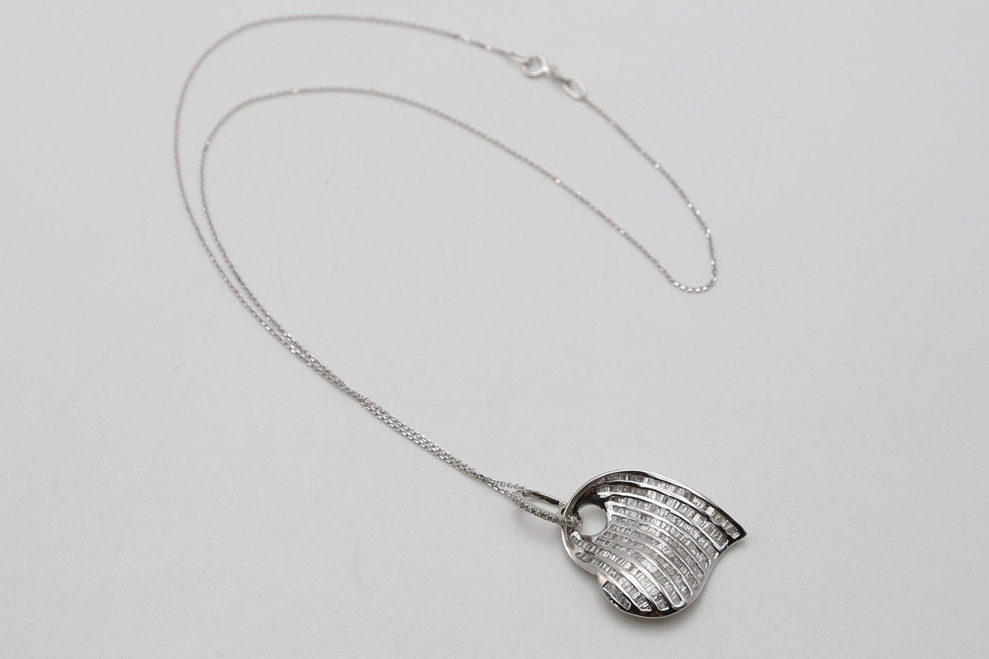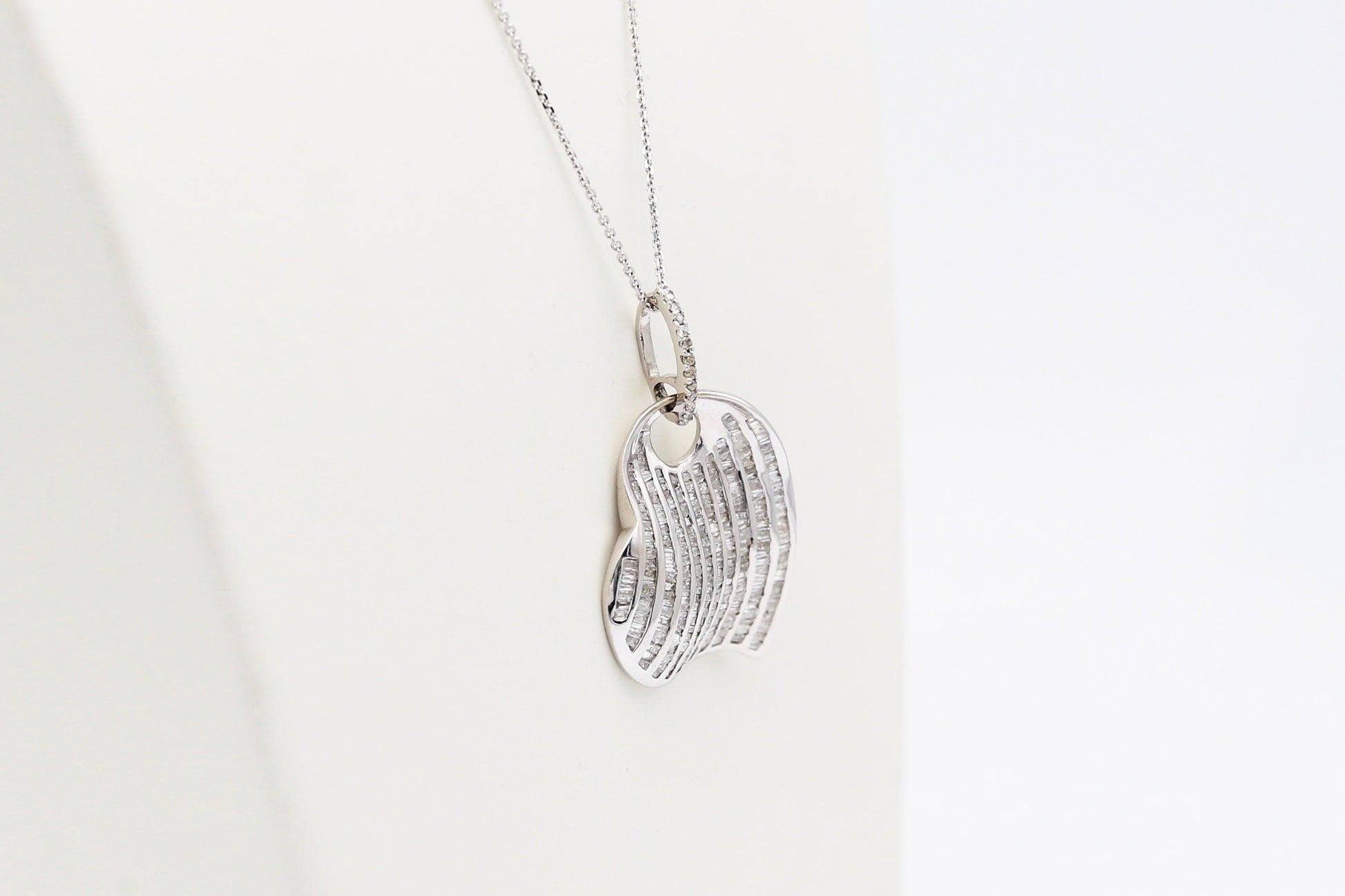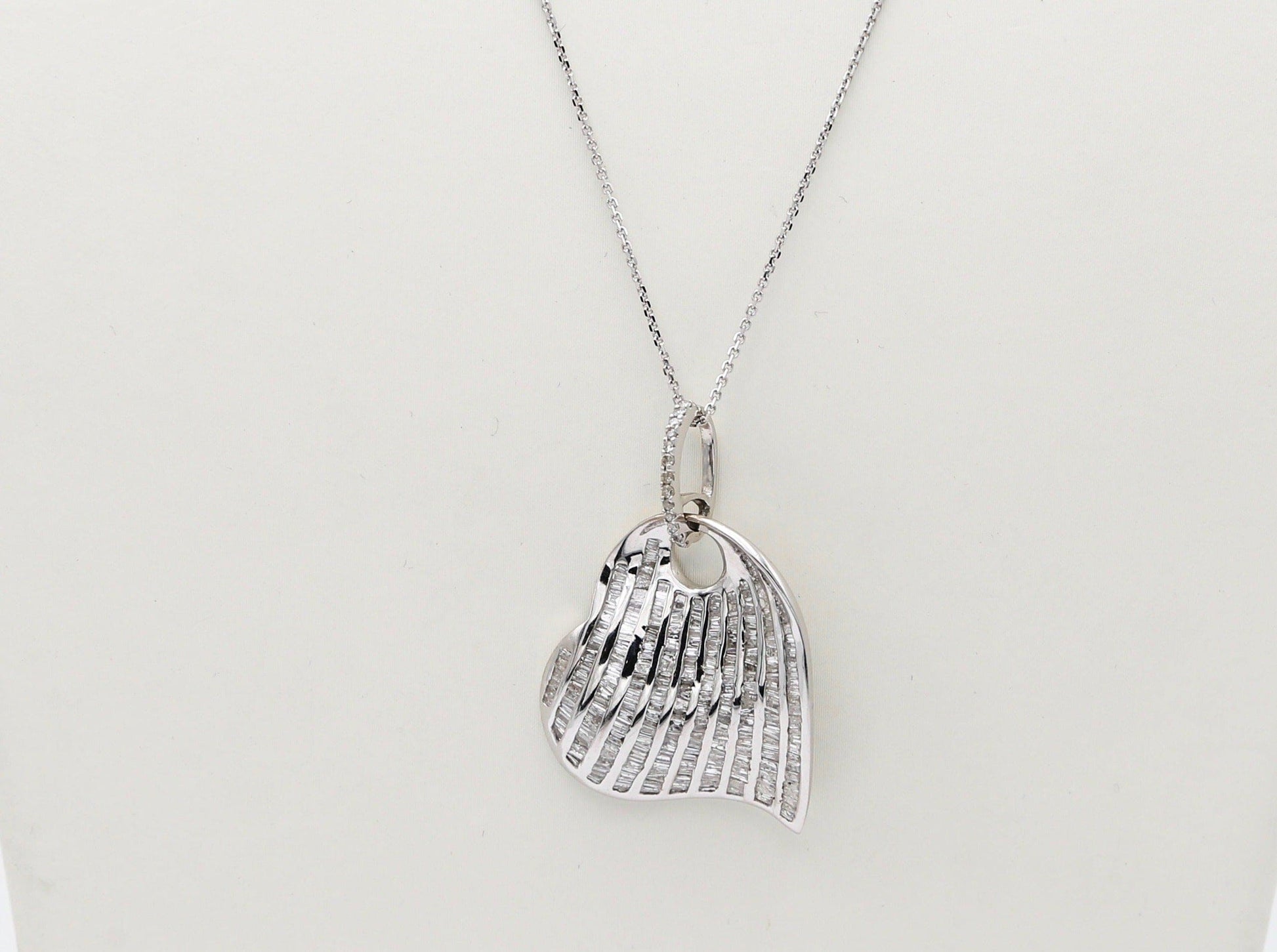 Elegantissimo pendente in oro bianco 18 carati a forma di cuore completamente ricoperto da splendenti diamanti taglio teps.