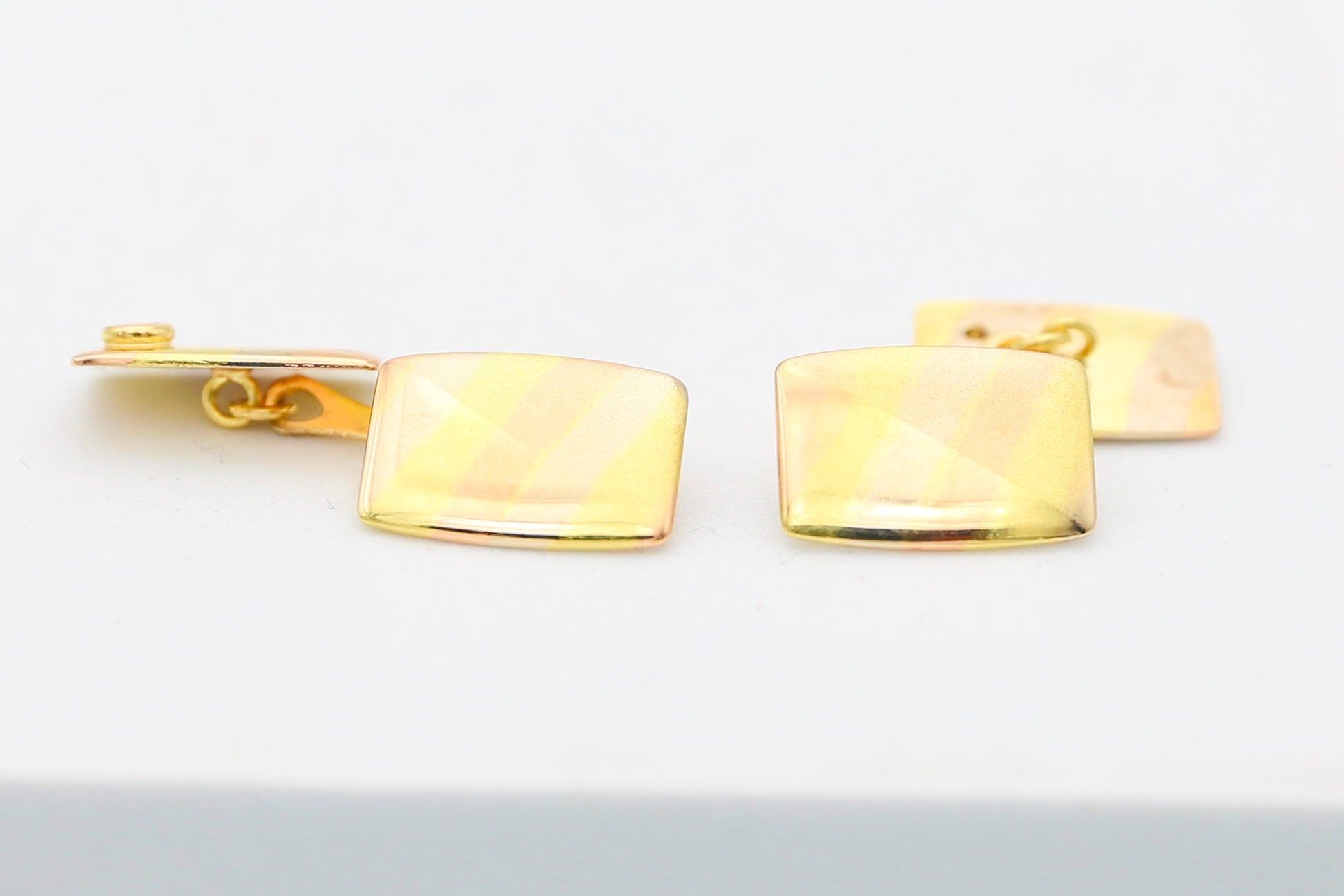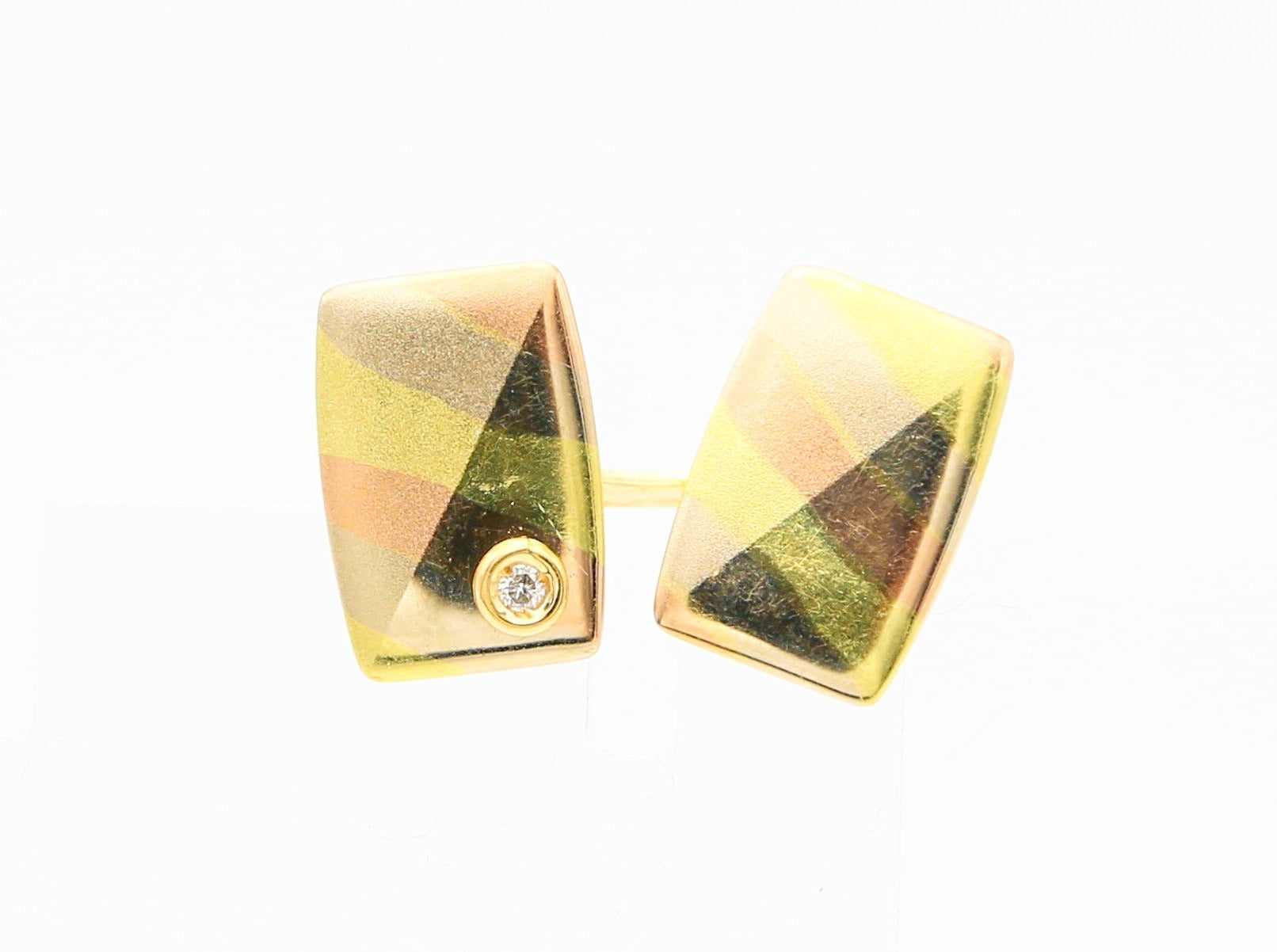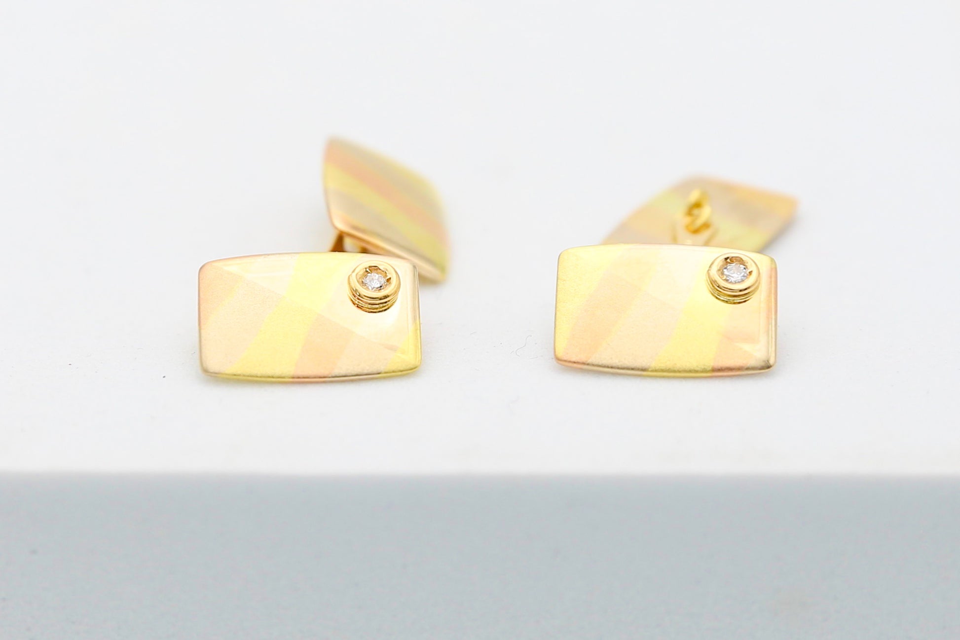 Gemelli doppi uomo in oro lucido e satinato sfumato nei vari colori dell'oro impreziosito da due diamanti .