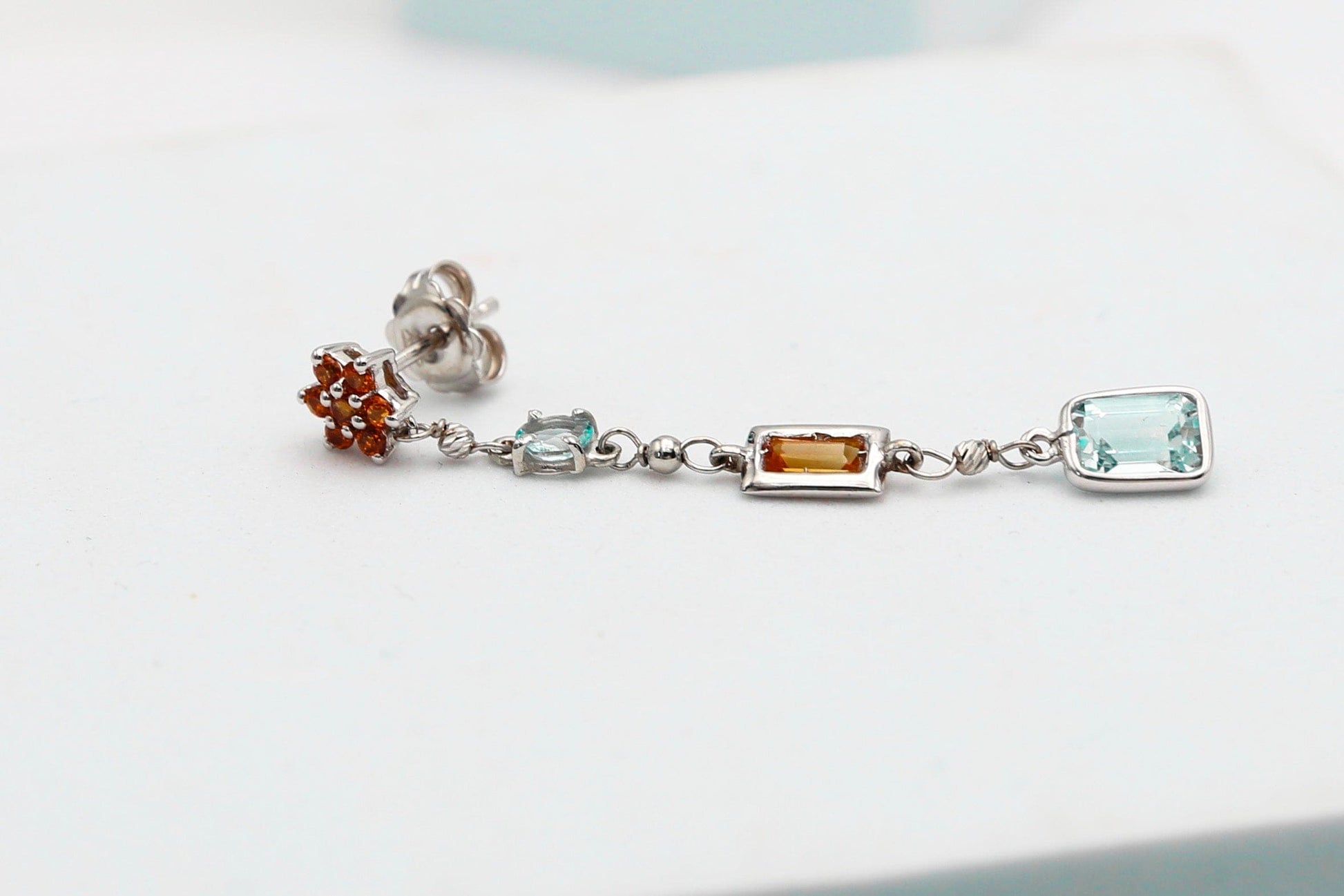 Orecchini in oro bianco 18kt pendenti con pietre naturali disposte con cura dalla nostra designer.