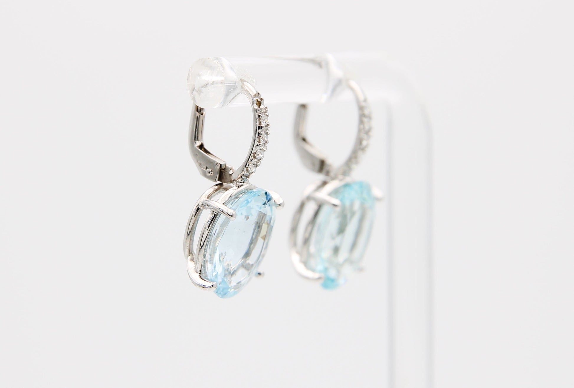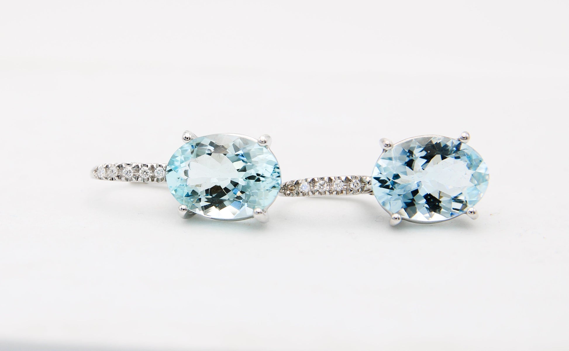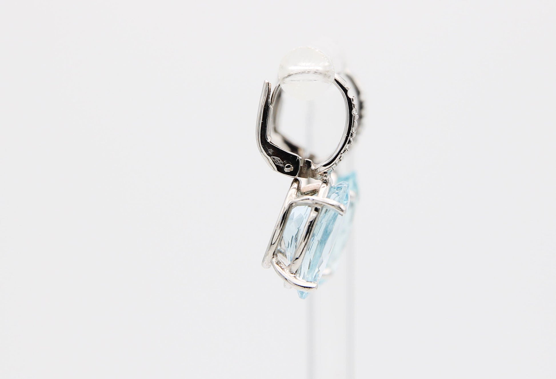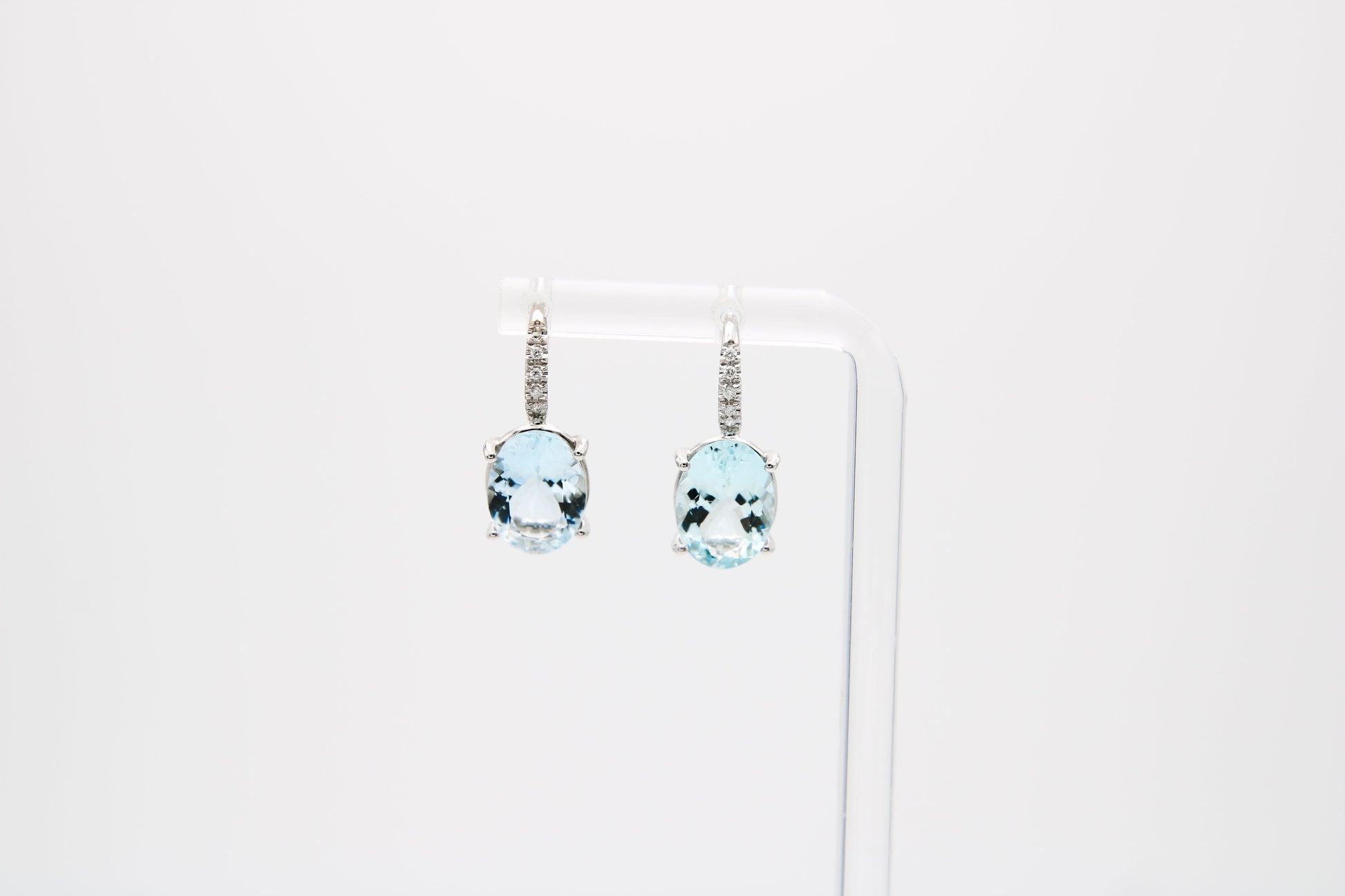 Orecchini in oro bianco 18 kt con 2 acquamarine principali e 10 diamanti.