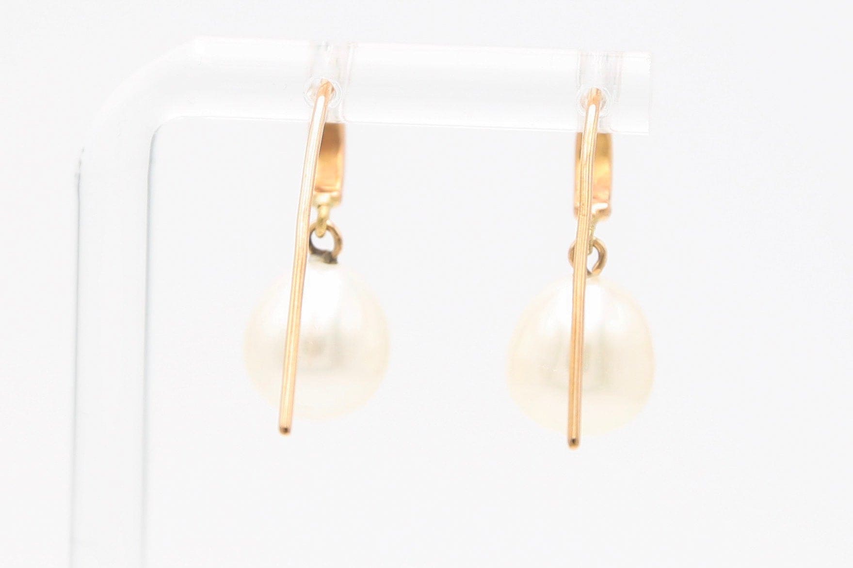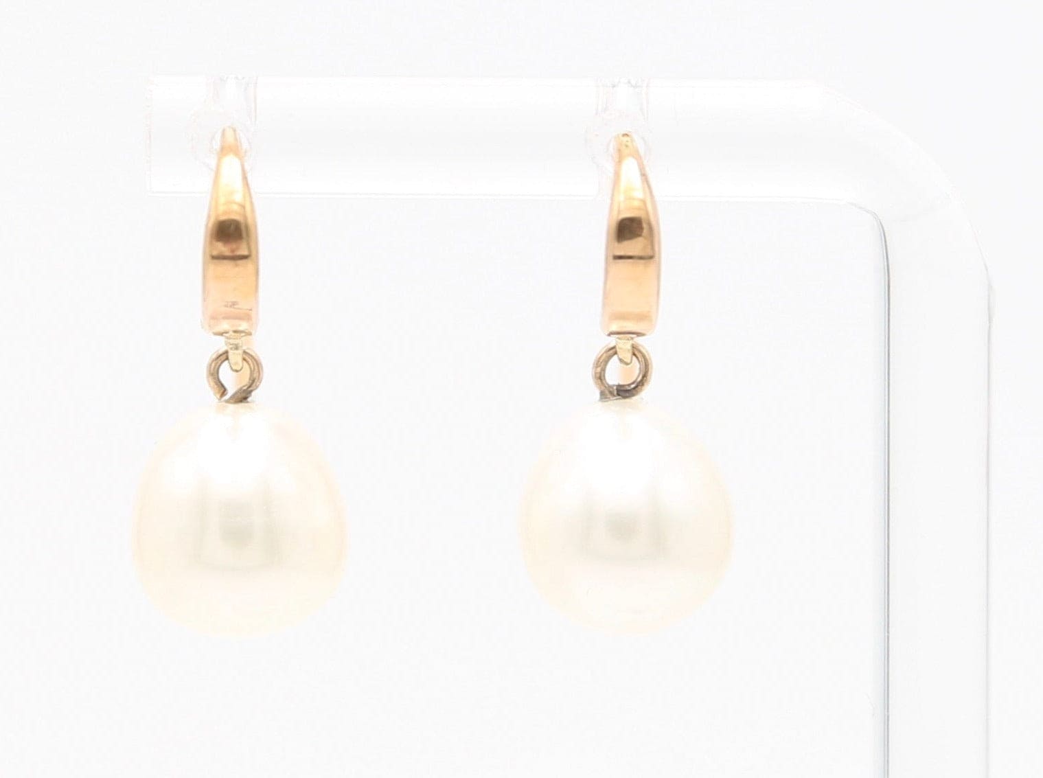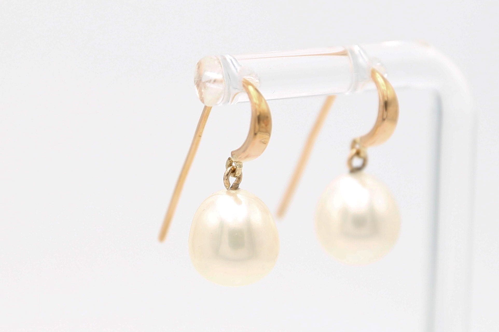 Orecchini in oro giallo 18kt con gancio e perle pendenti forma di pera.