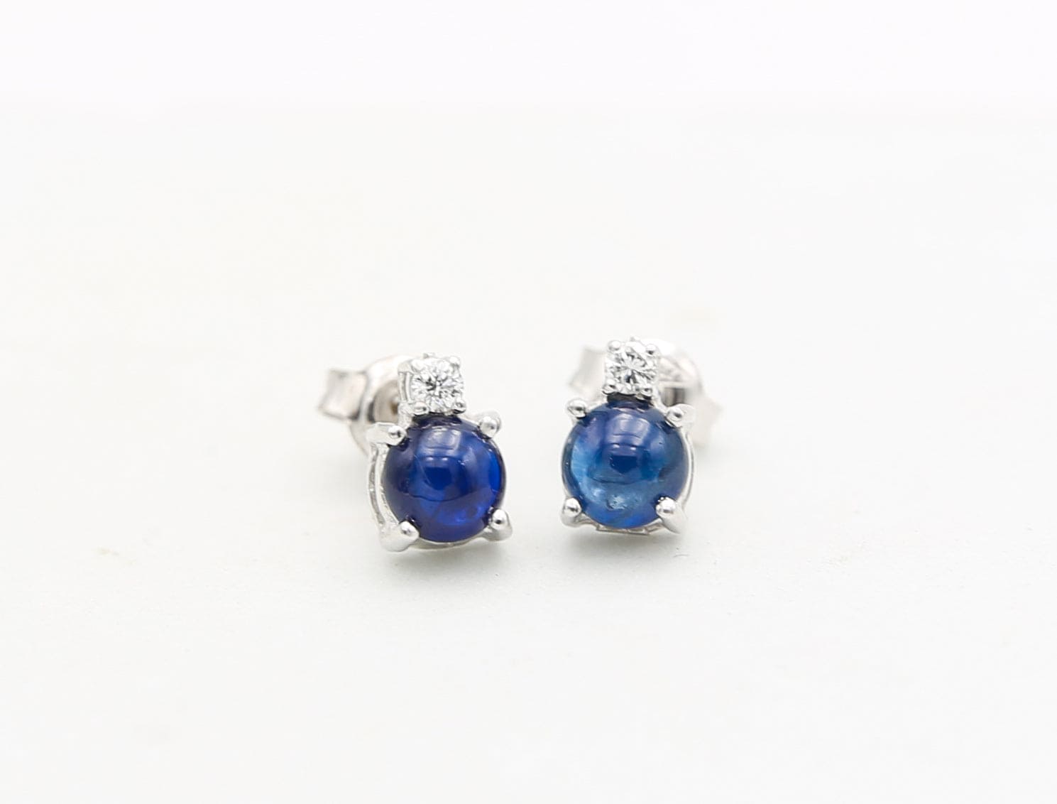 - 2 Zaffiri, taglio Cabochon, peso totale 1,8 carati, colore Blu (2 x 0,9 carati)