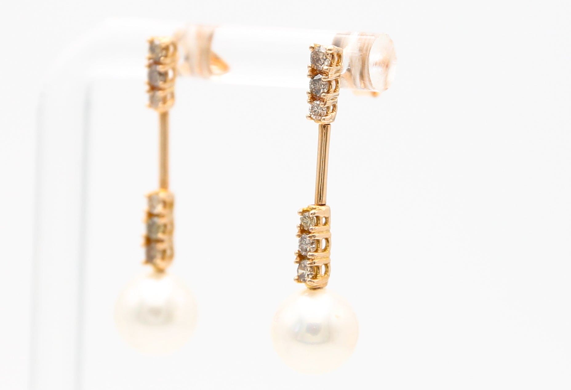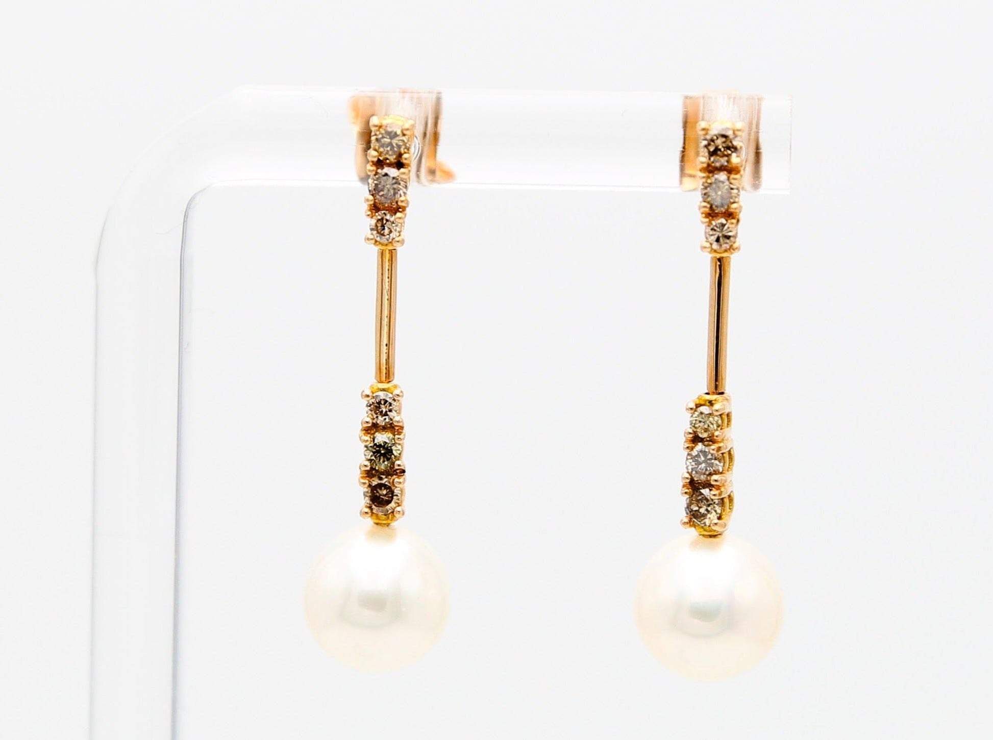 Orecchini in oro rosa 18kt, perno a farfalla con diamanti brown e perle giapponesi facile da indossare quotidianamente.
