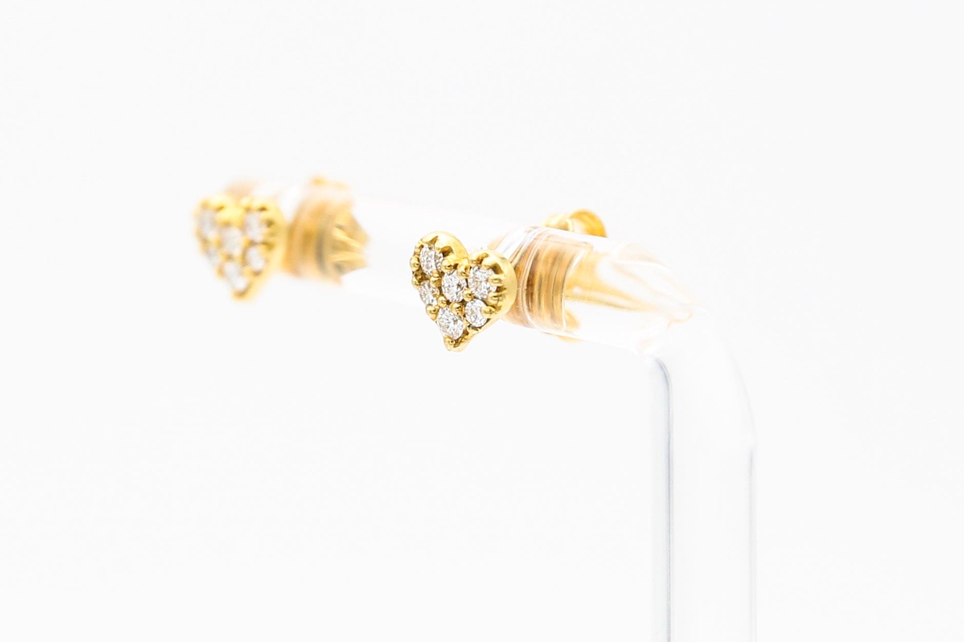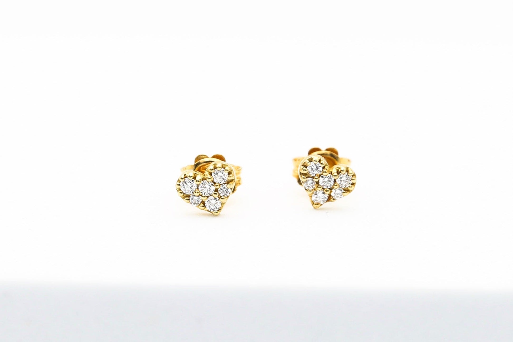 Orecchino a lobo a forma di cuore con un pave' di diamanti taglio brillante incastonati a regola d'arte su una base di oro giallo 18 carati.