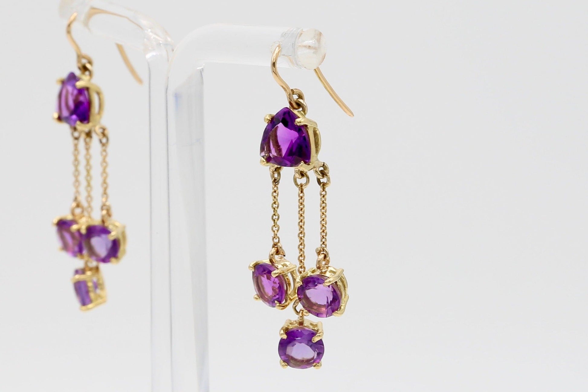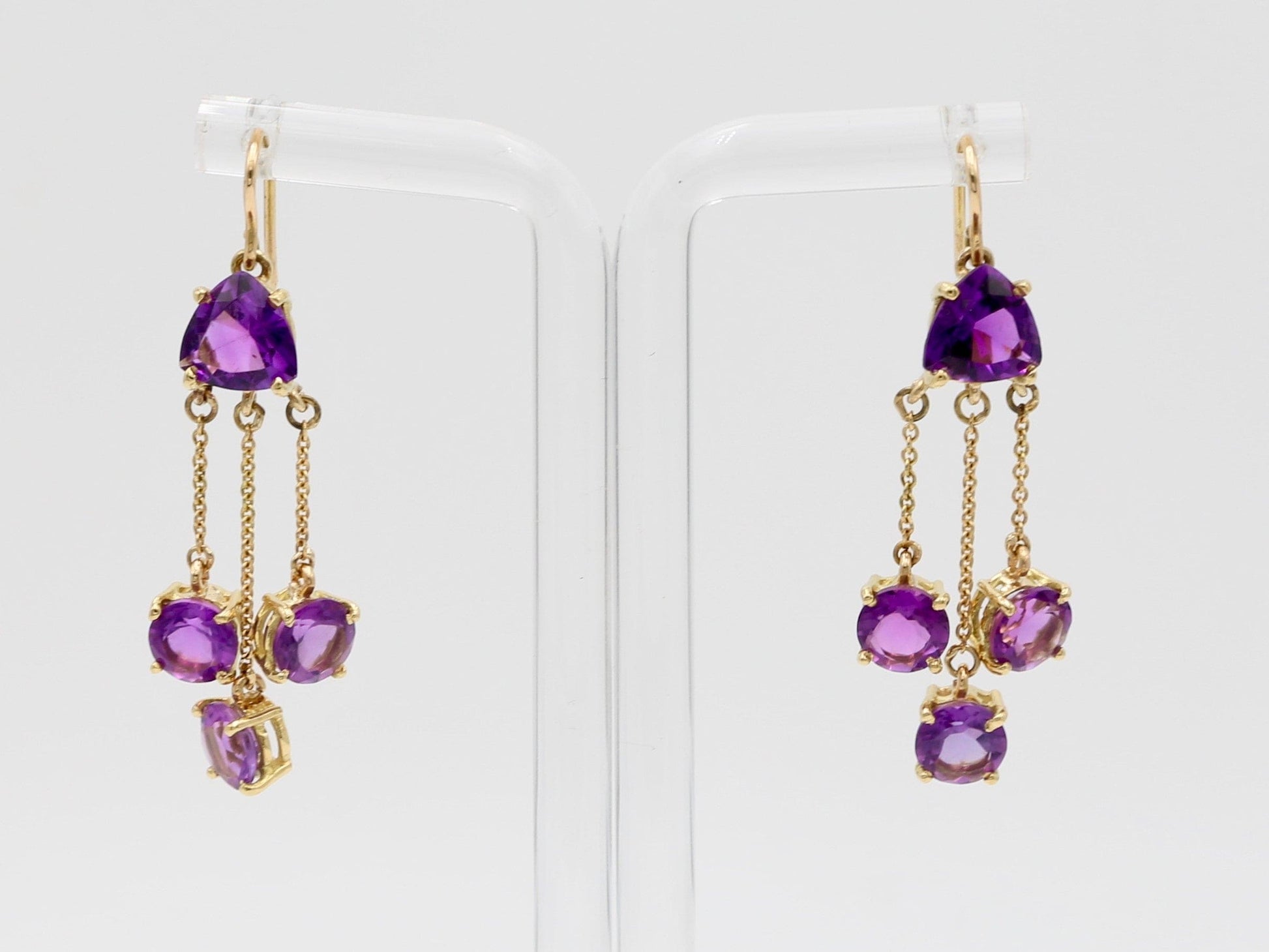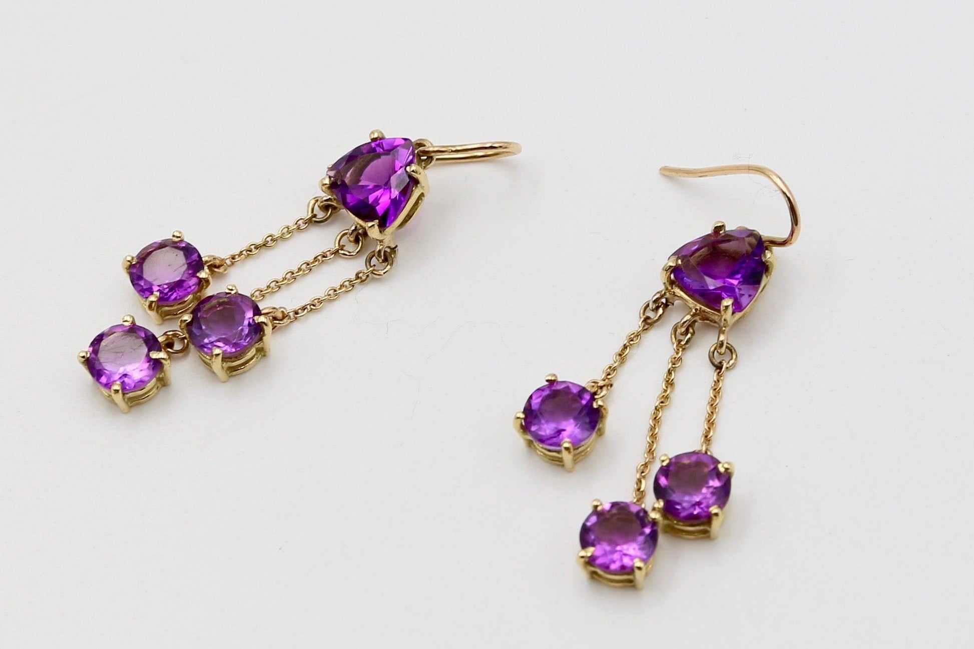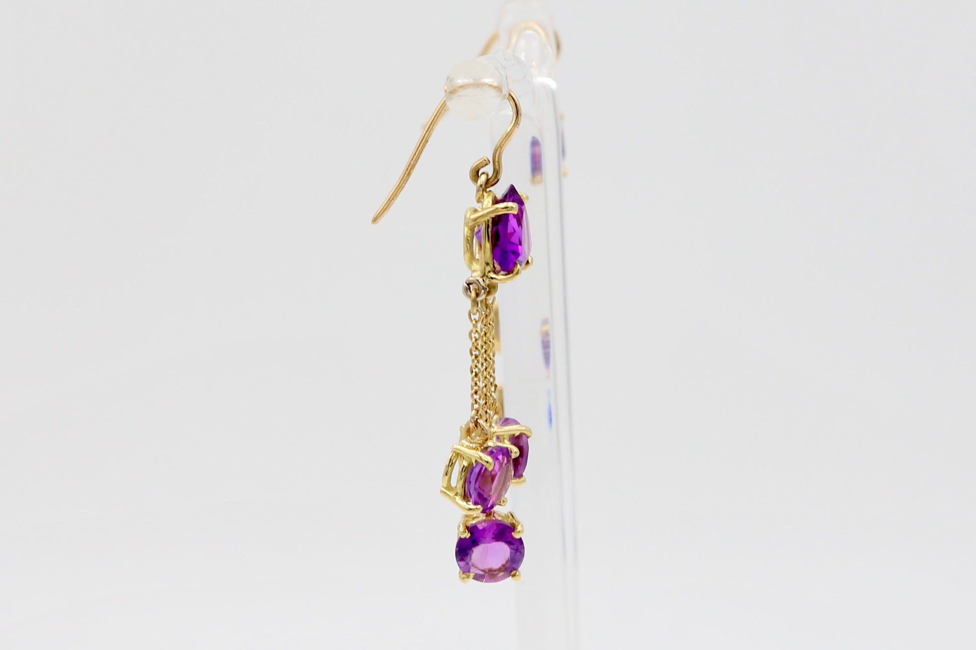 Orecchini pendenti a 3 file in oro 18kt maglia rollò con castoni e ametiste sfaccettate