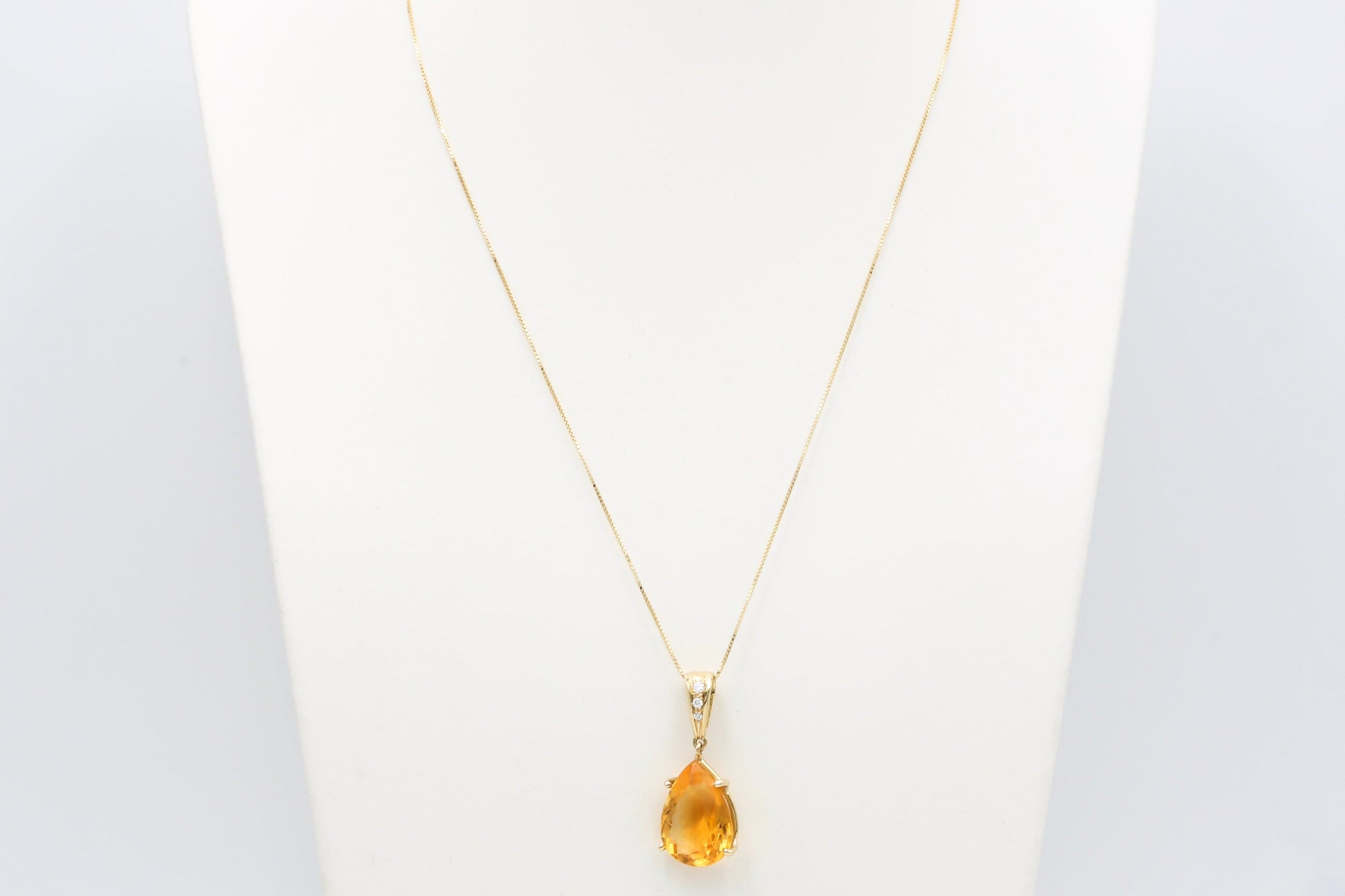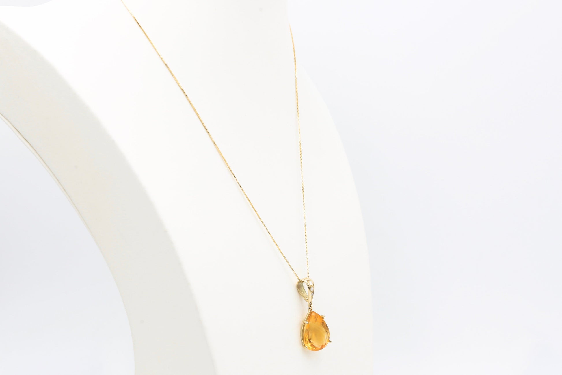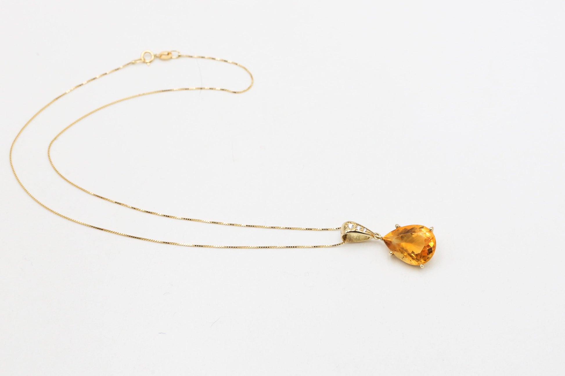 Collana con pendente in oro giallo con con quarzo citrino e diamanti