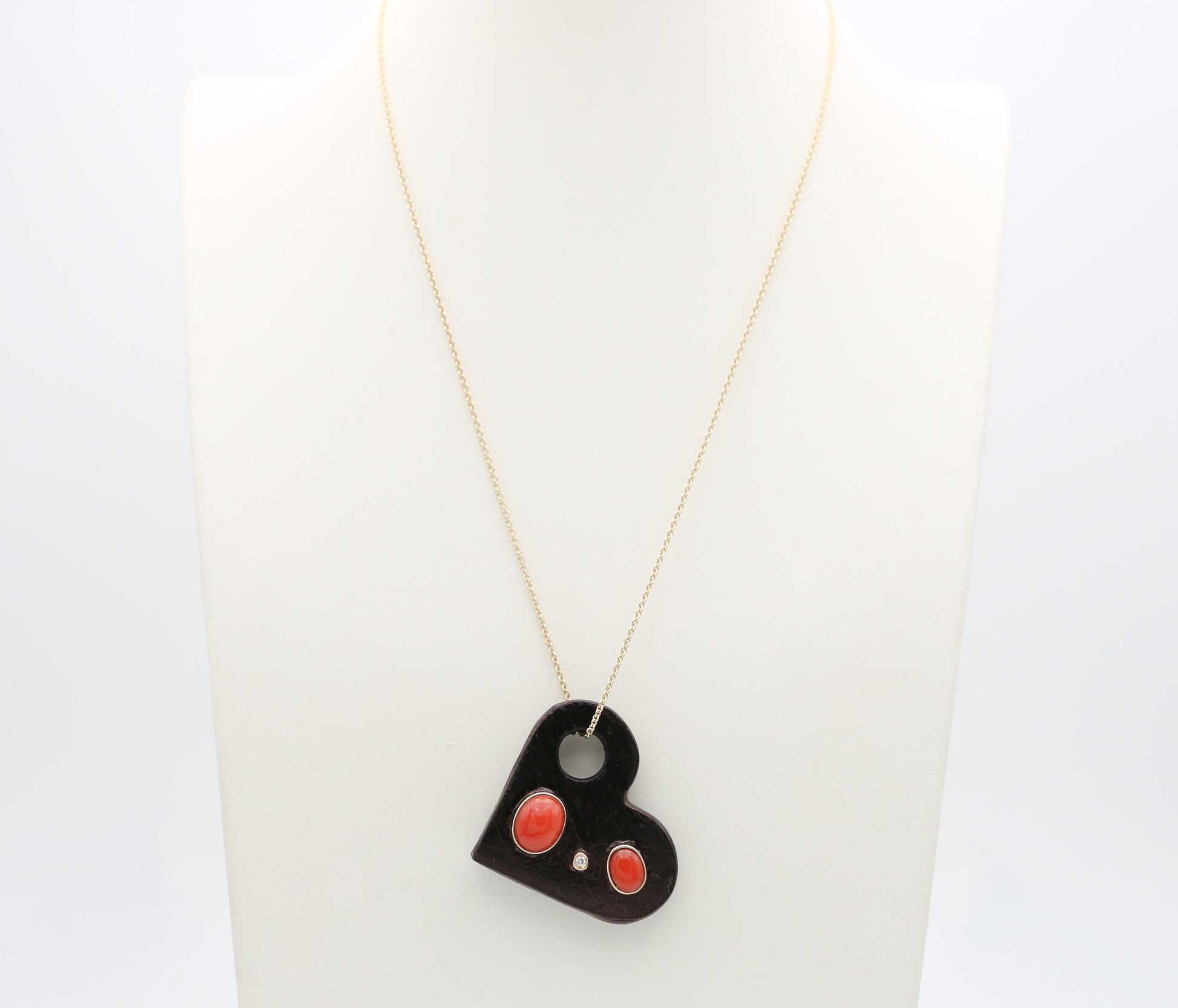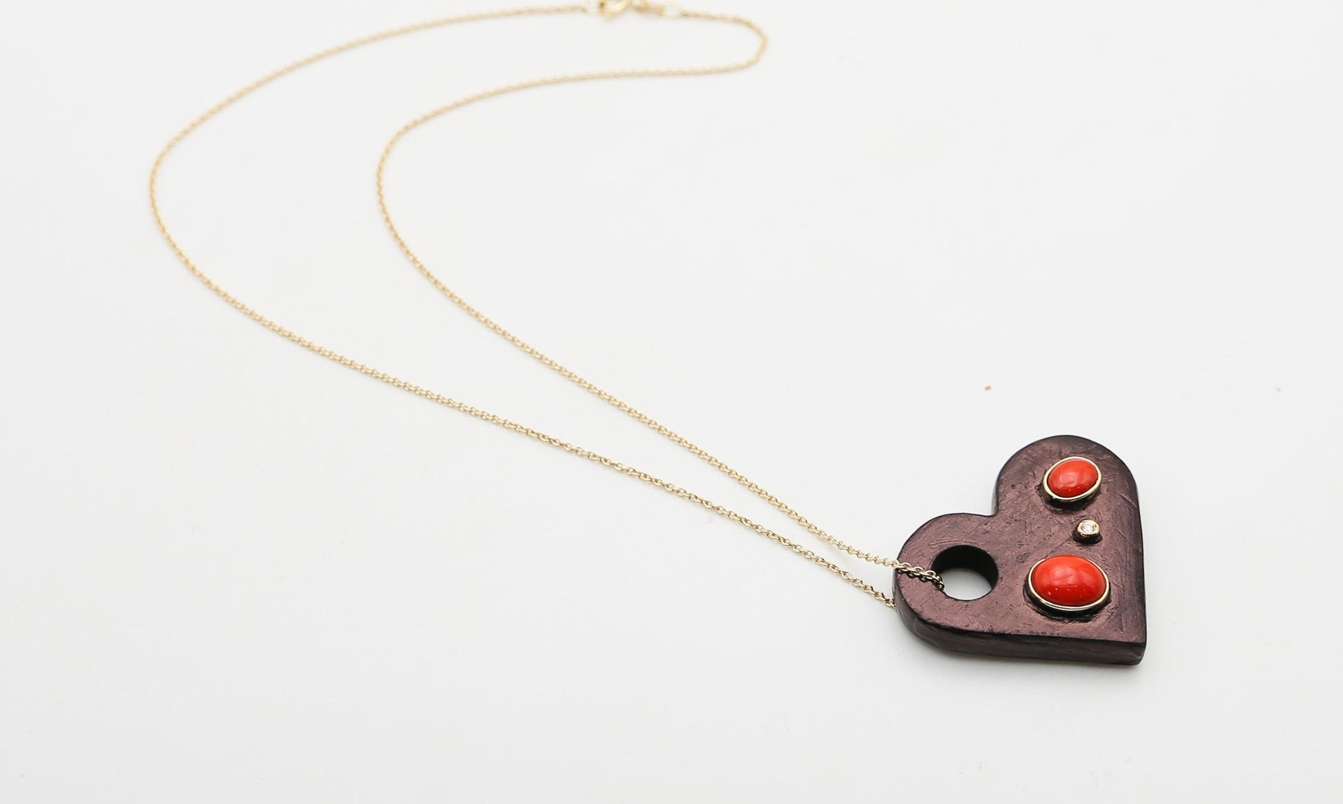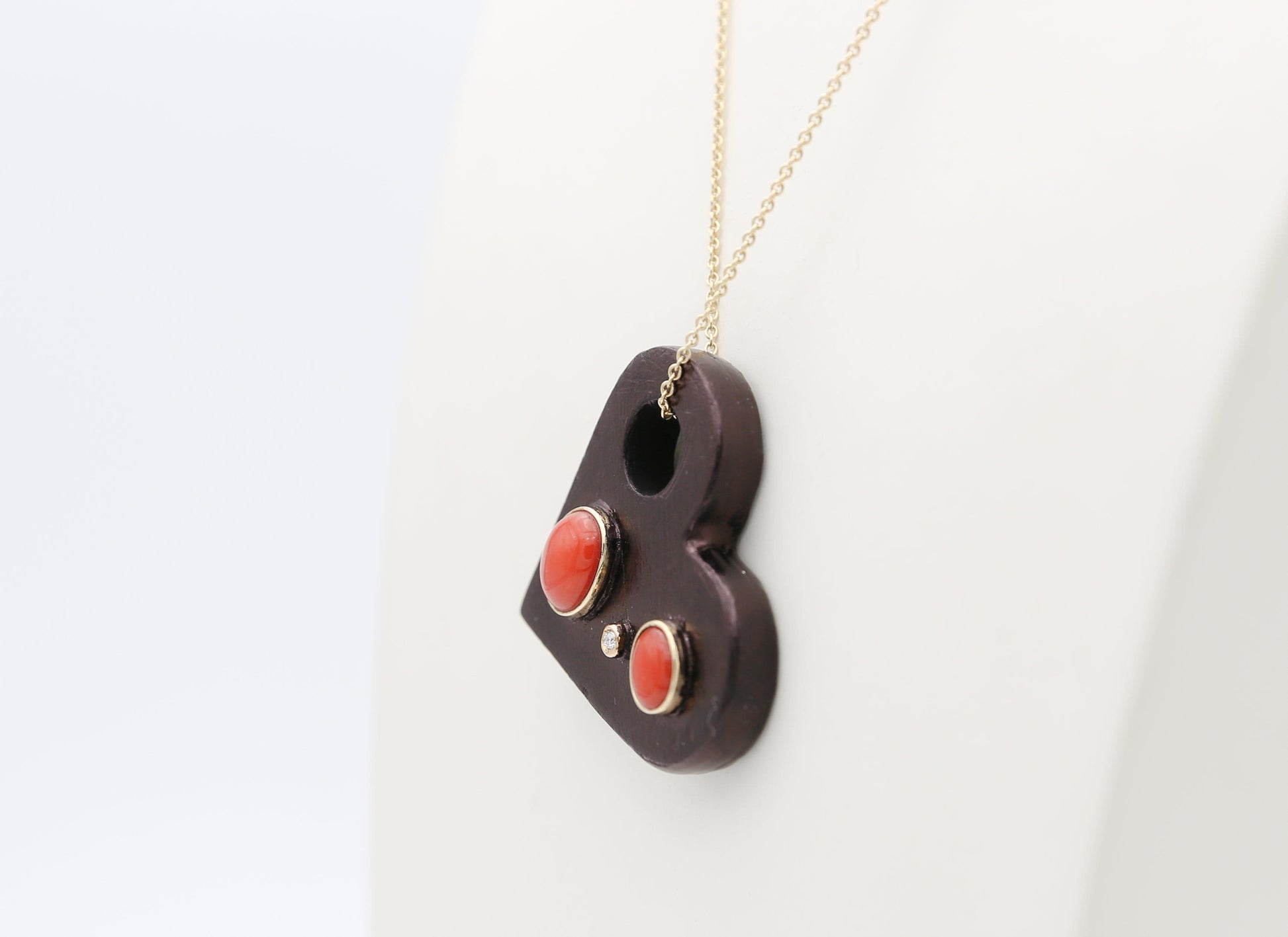 Eccezionale ed unico ciondolo in legno qualità ebano con castoni in oro giallo 18 kt applicati
