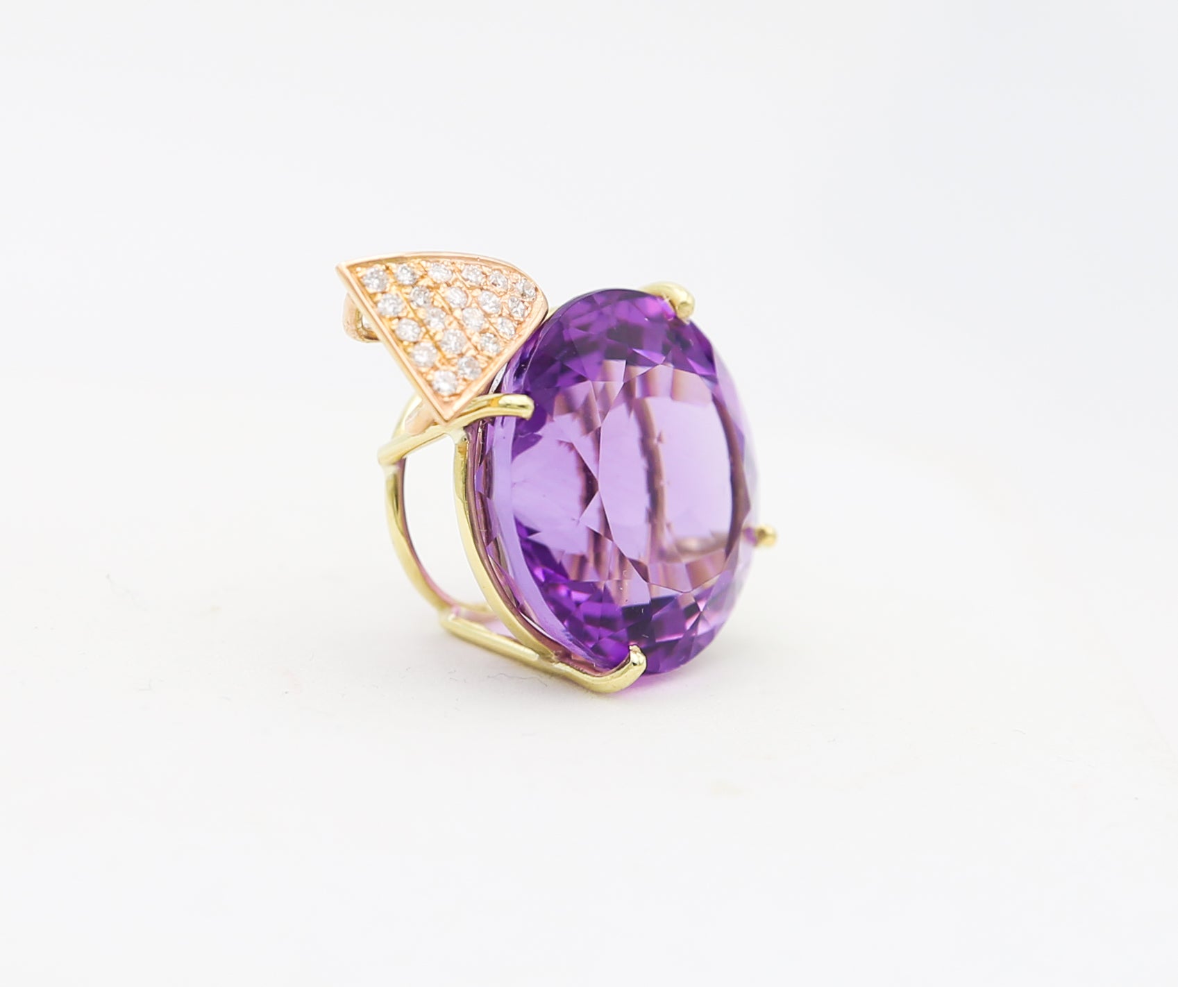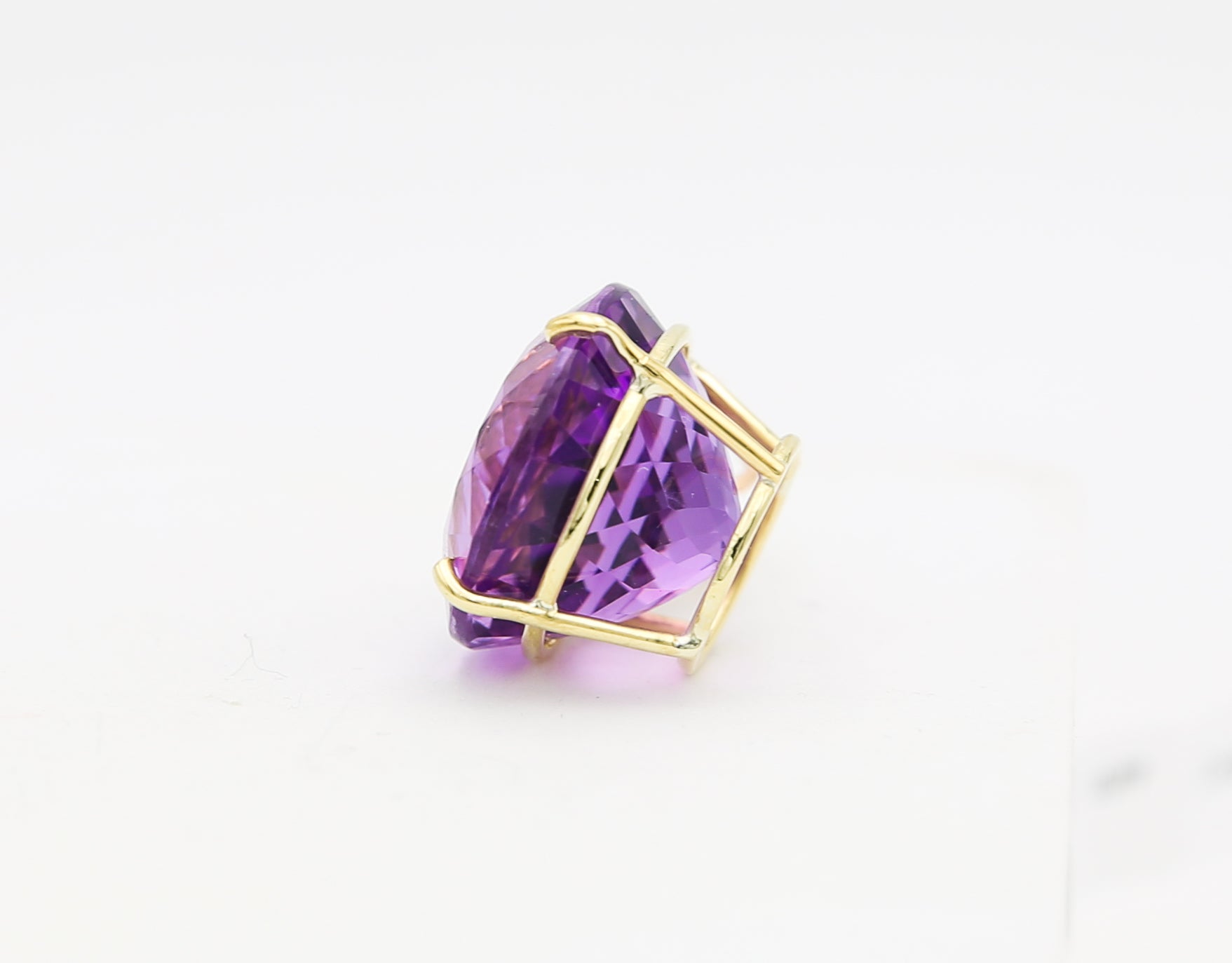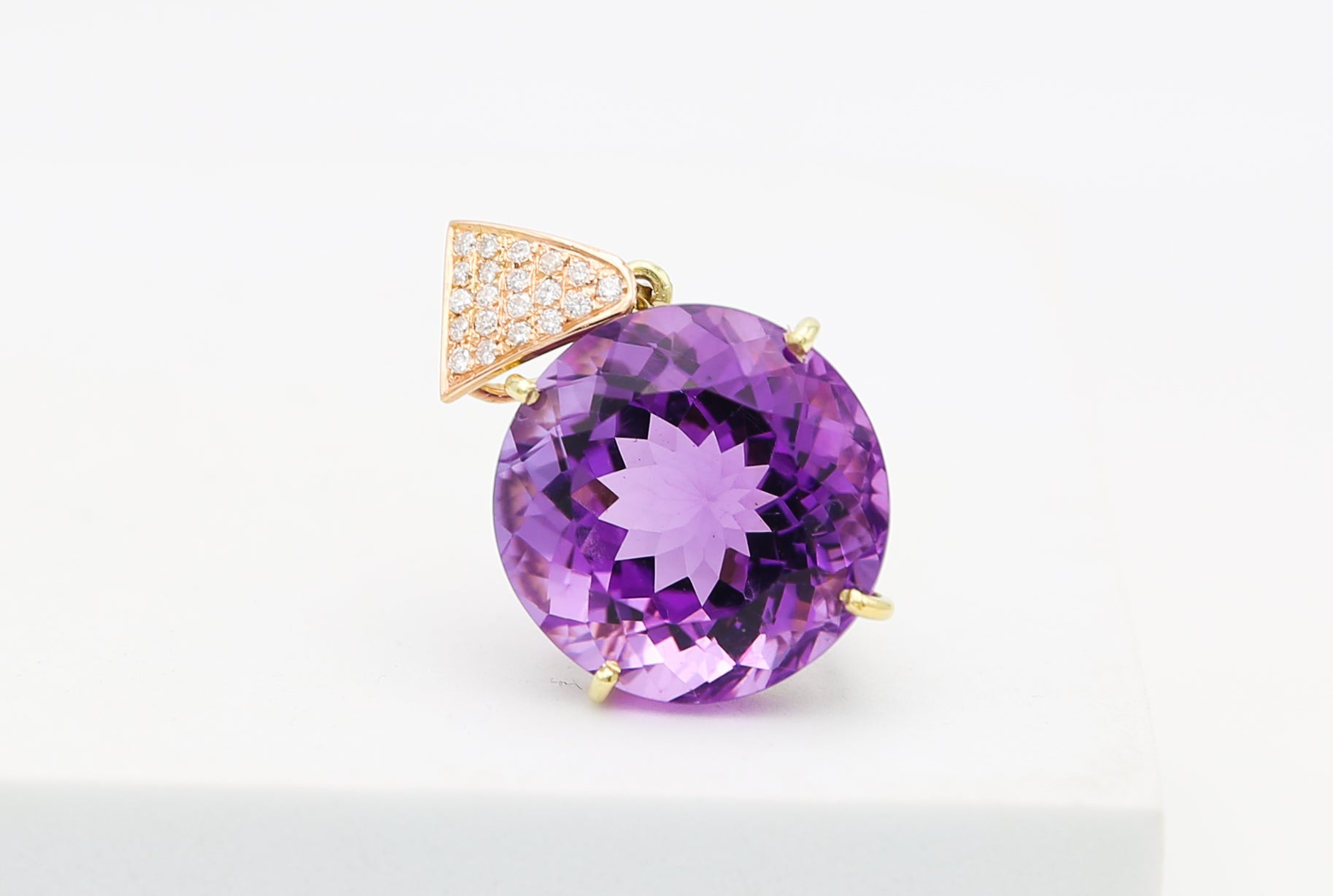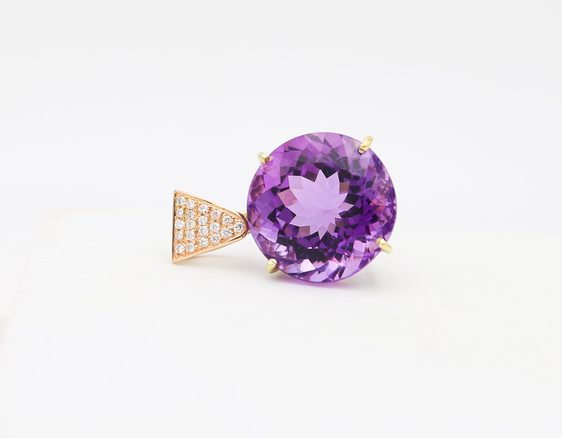 Eccezionale pendente realizzato in oro giallo con una preziosa gemma di ametista viola intenso